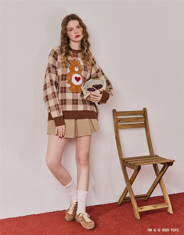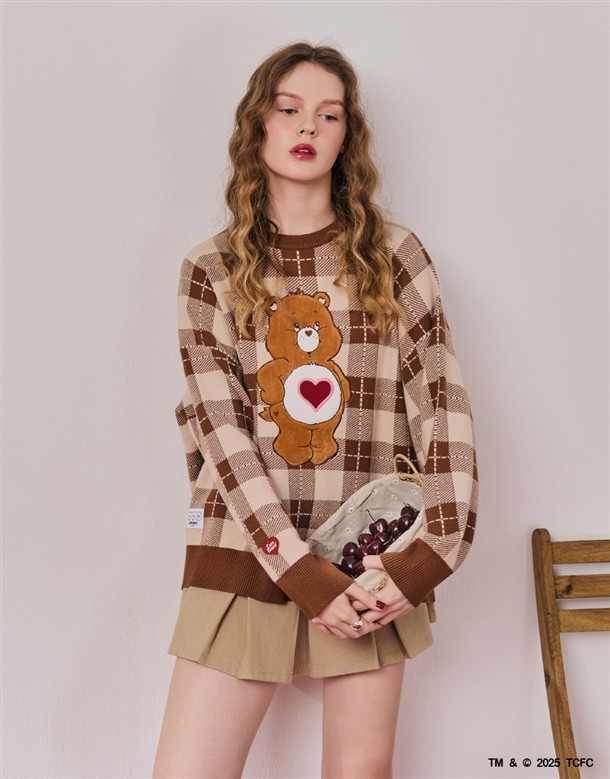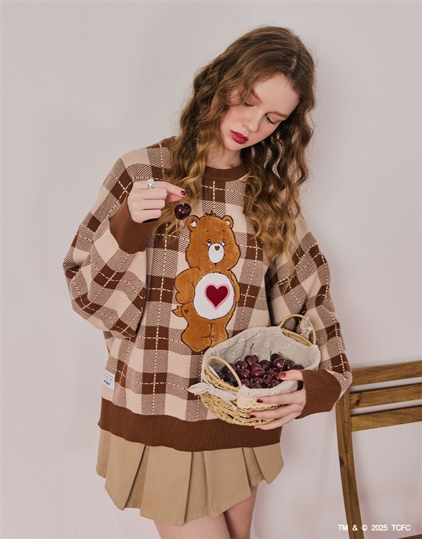 溫柔小熊格紋毛織上衣‧親子款(女)