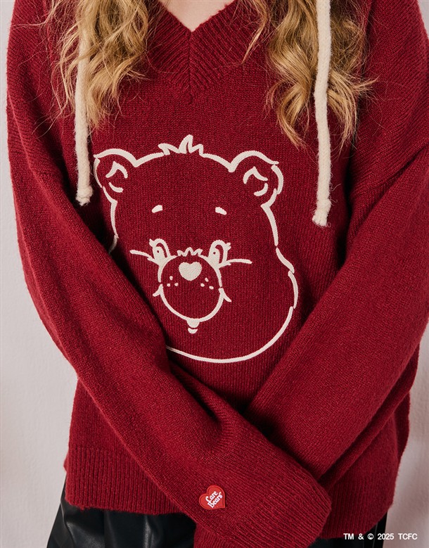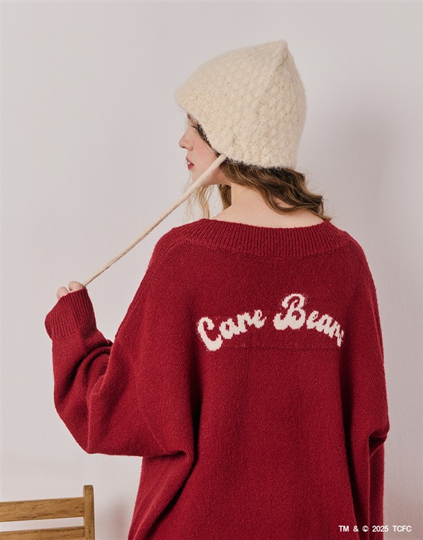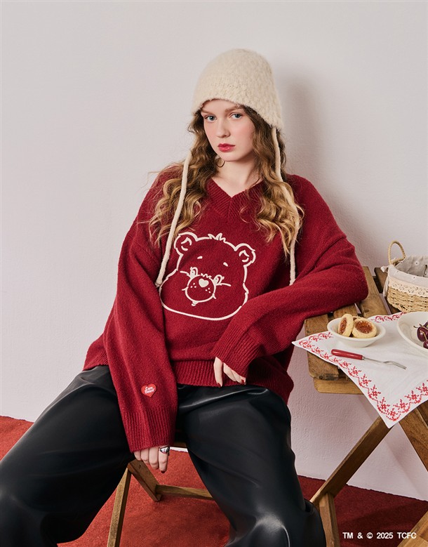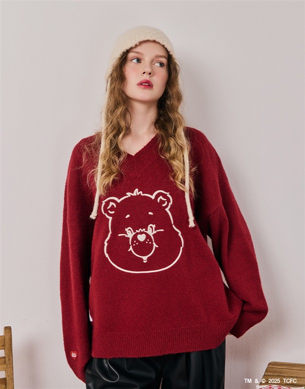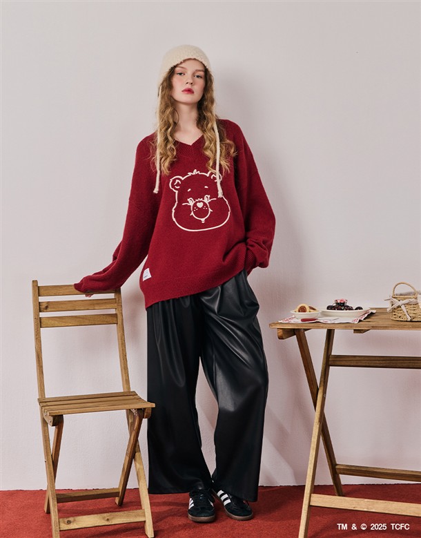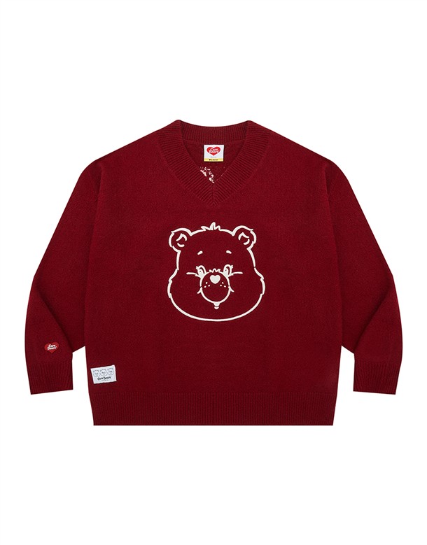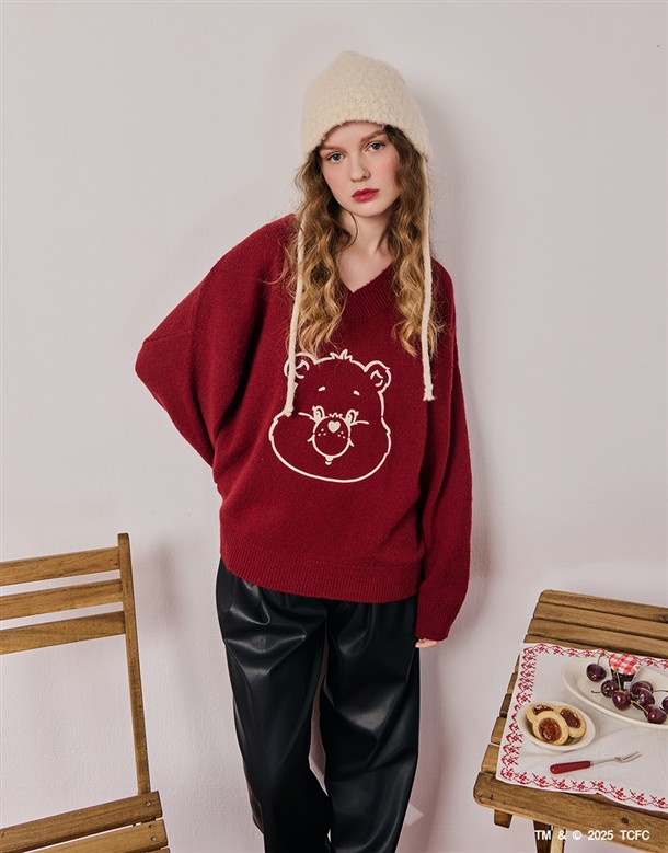 小熊大臉V領寬鬆毛衣