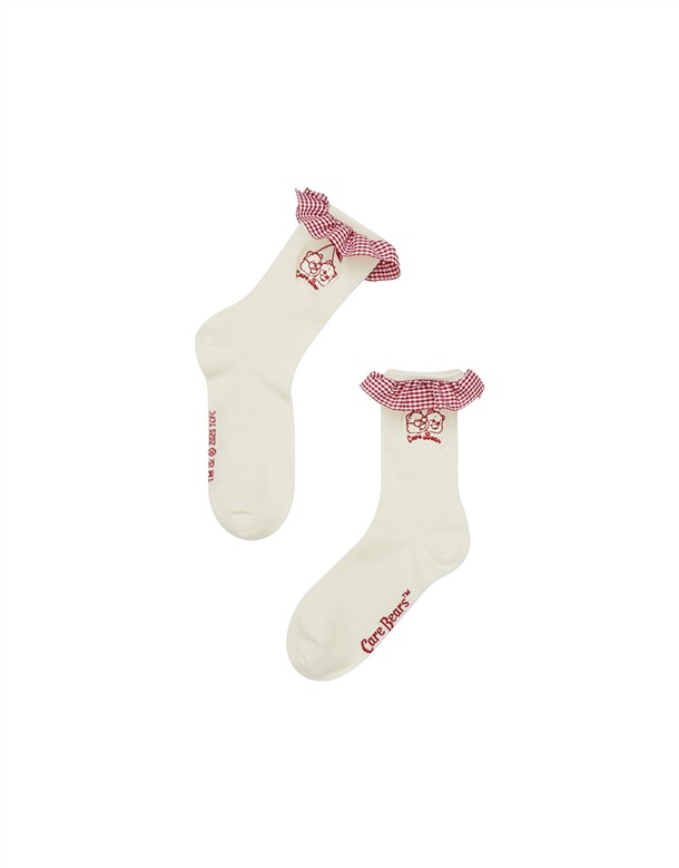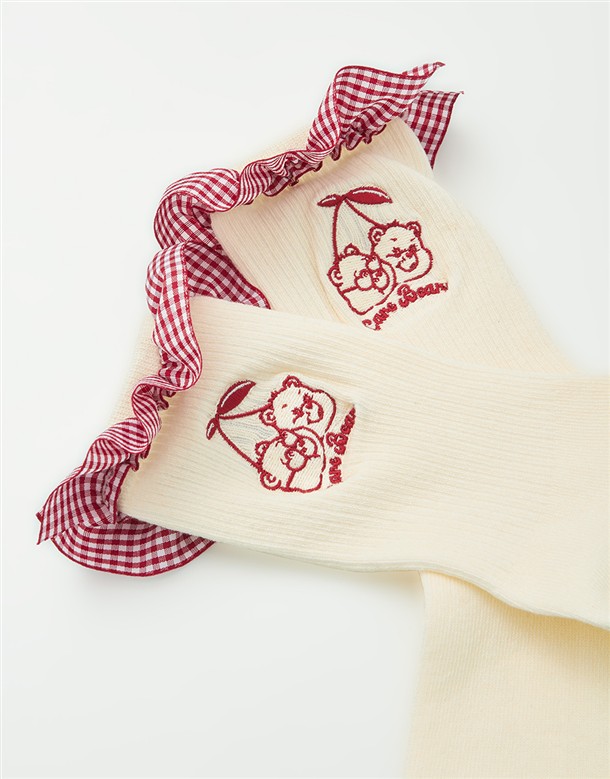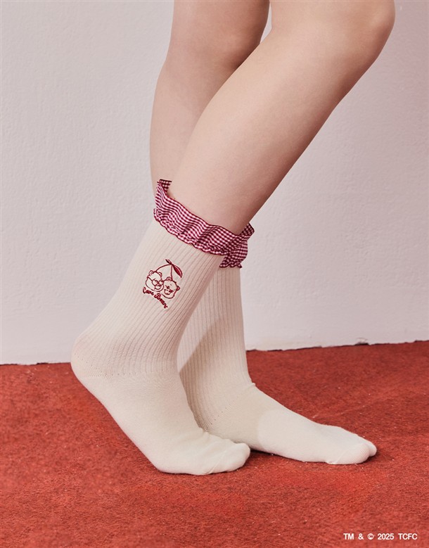 MIT 櫻桃小熊格紋荷葉襪子‧親子款(女)