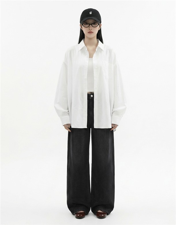 斜立體口袋寬鬆襯衫