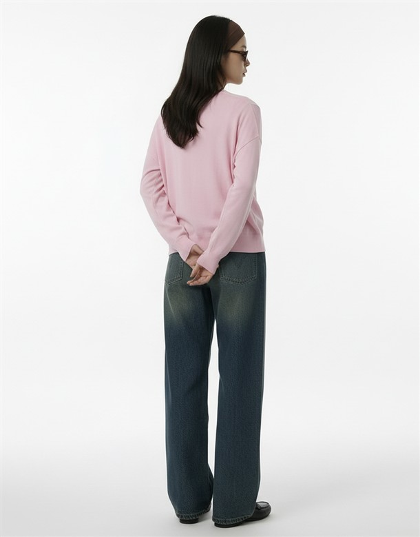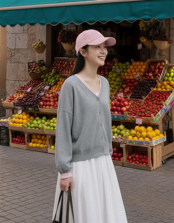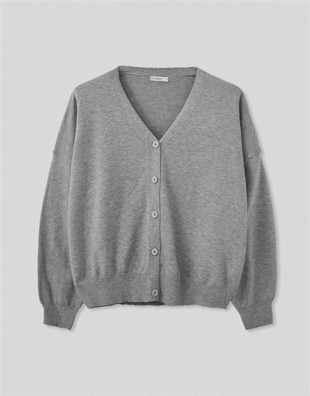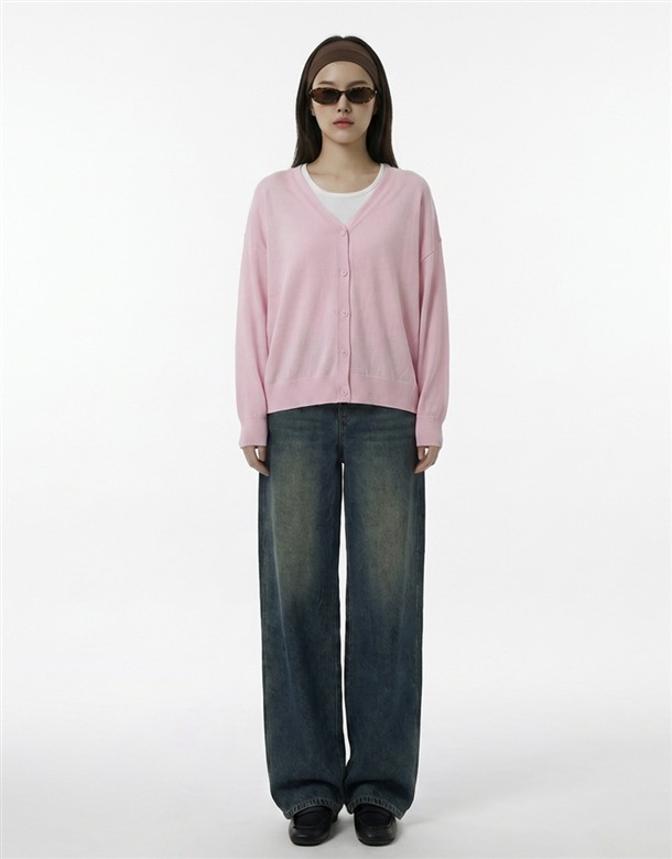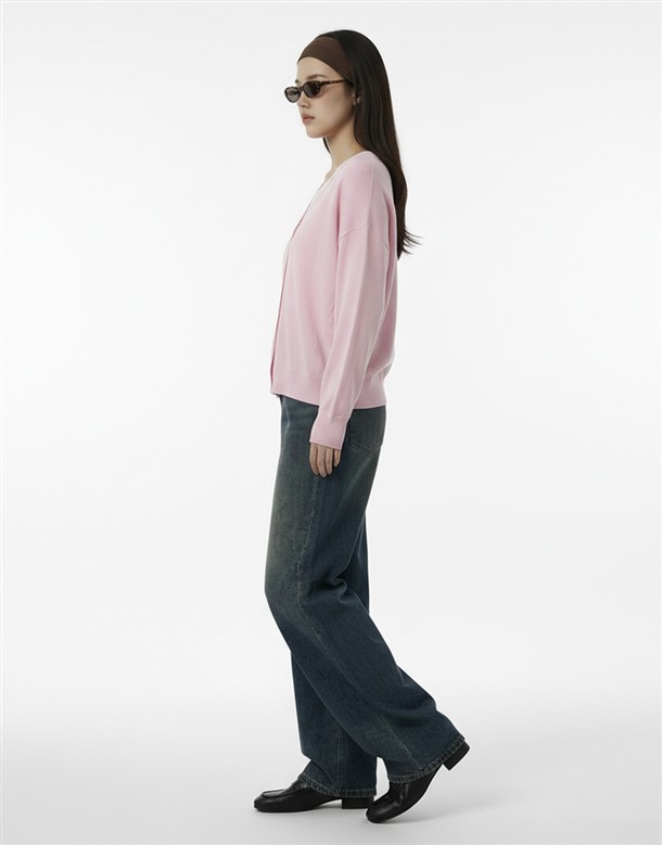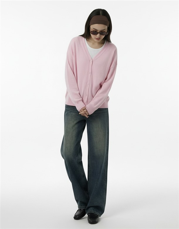 微寬鬆V領針織外套
