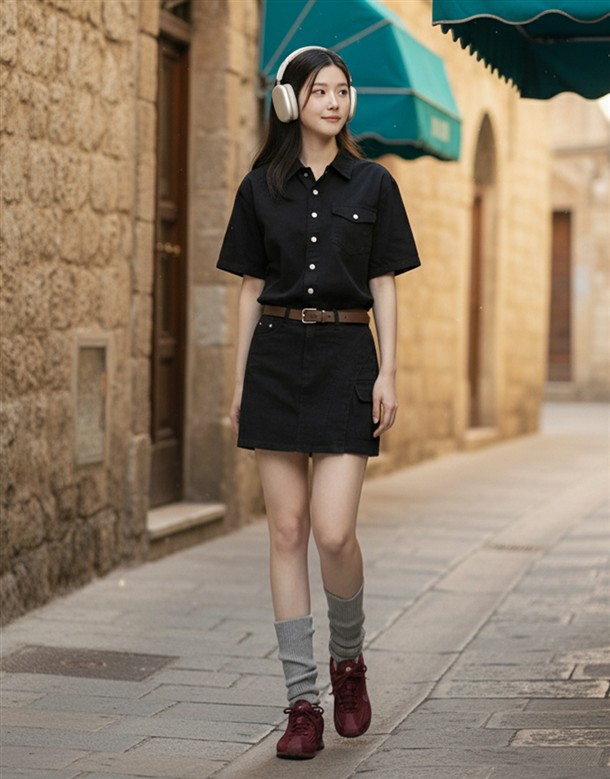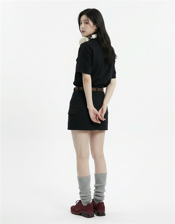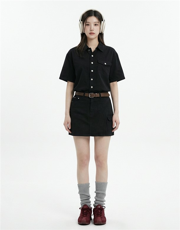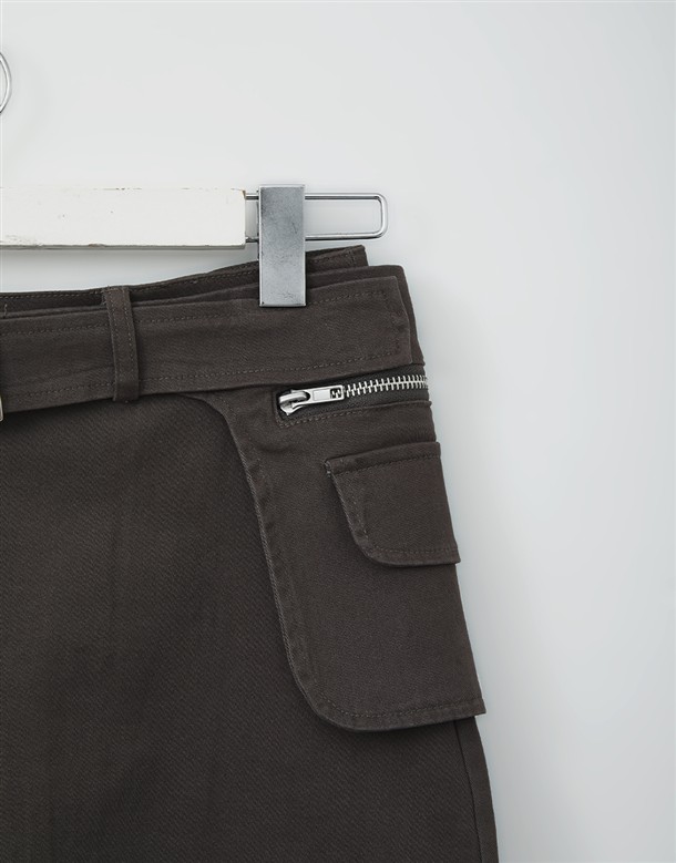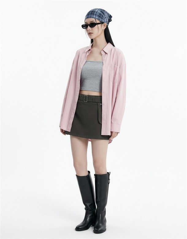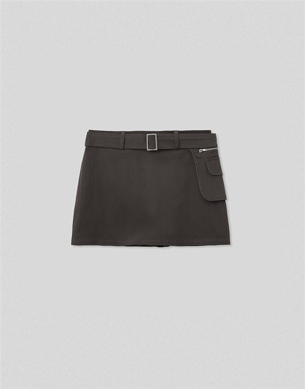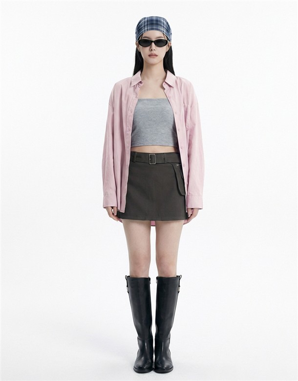 輕薄簡約斜紋短裙(附腰包)
