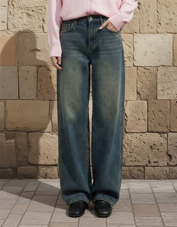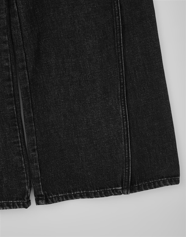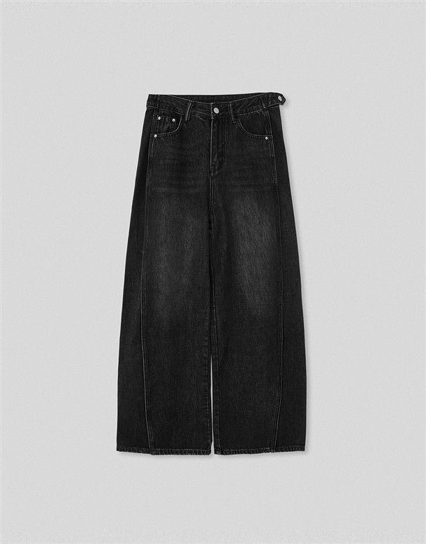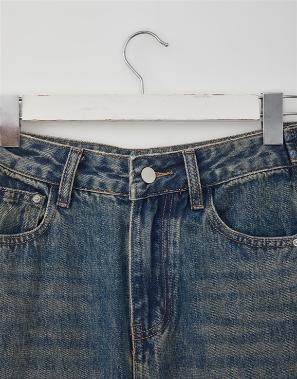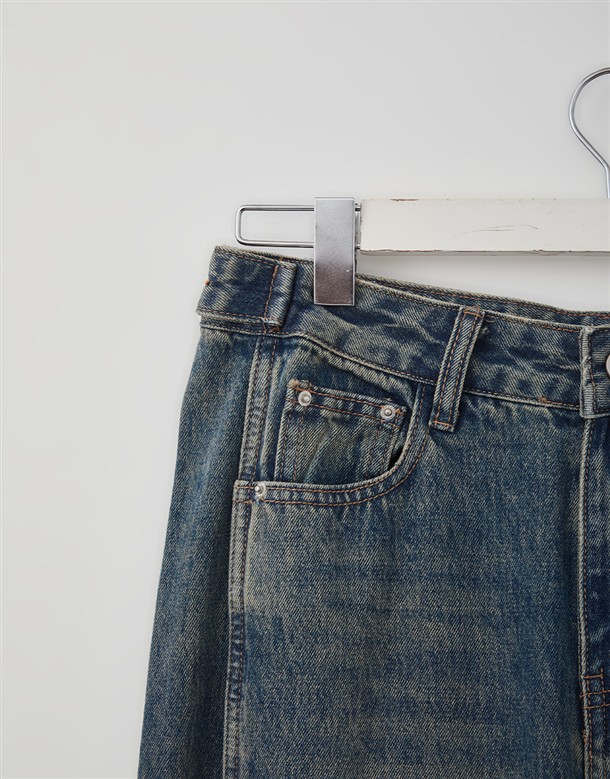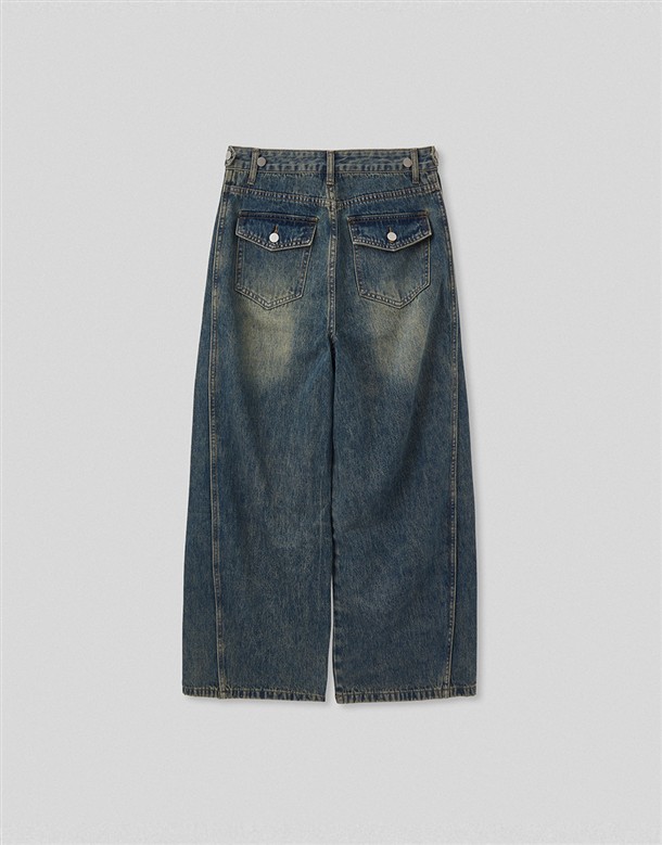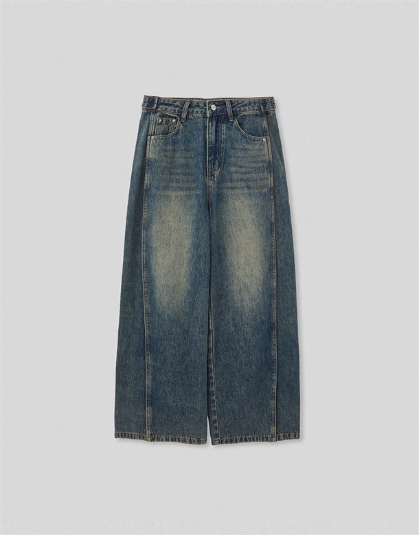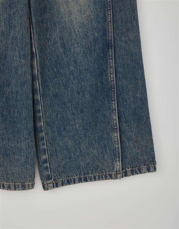 立體側縫線刷色牛仔寬褲