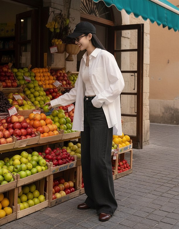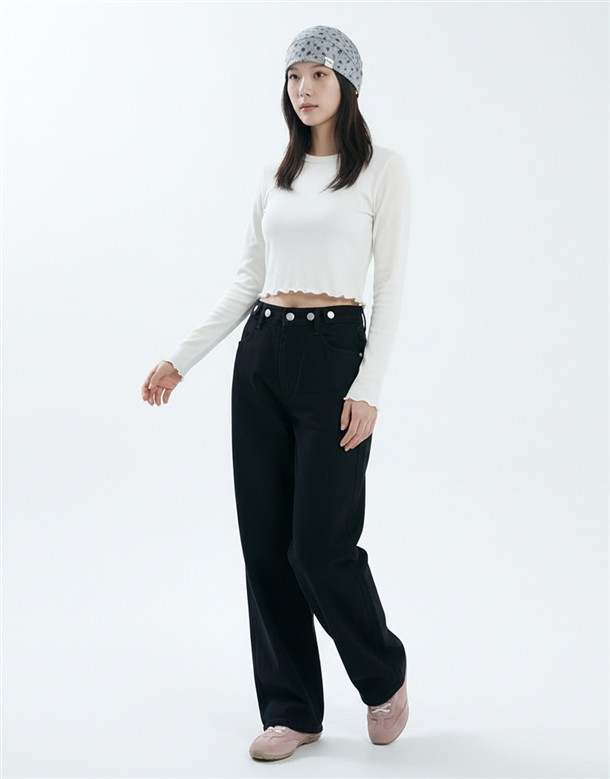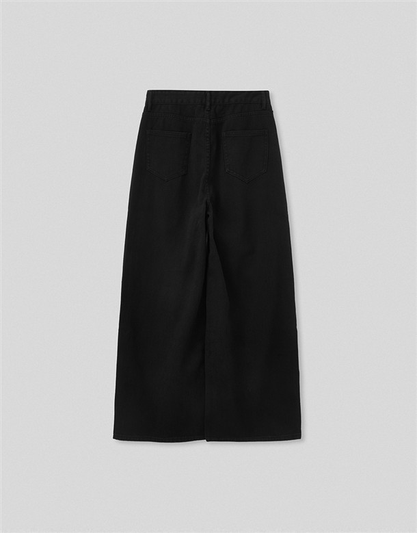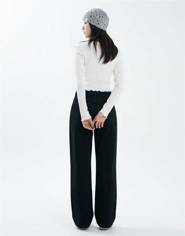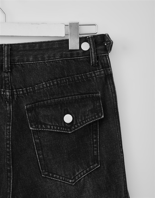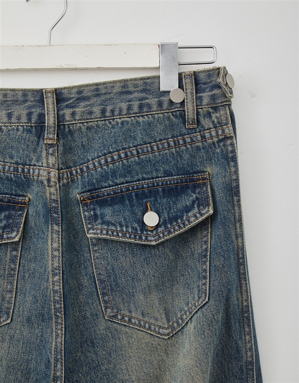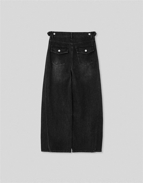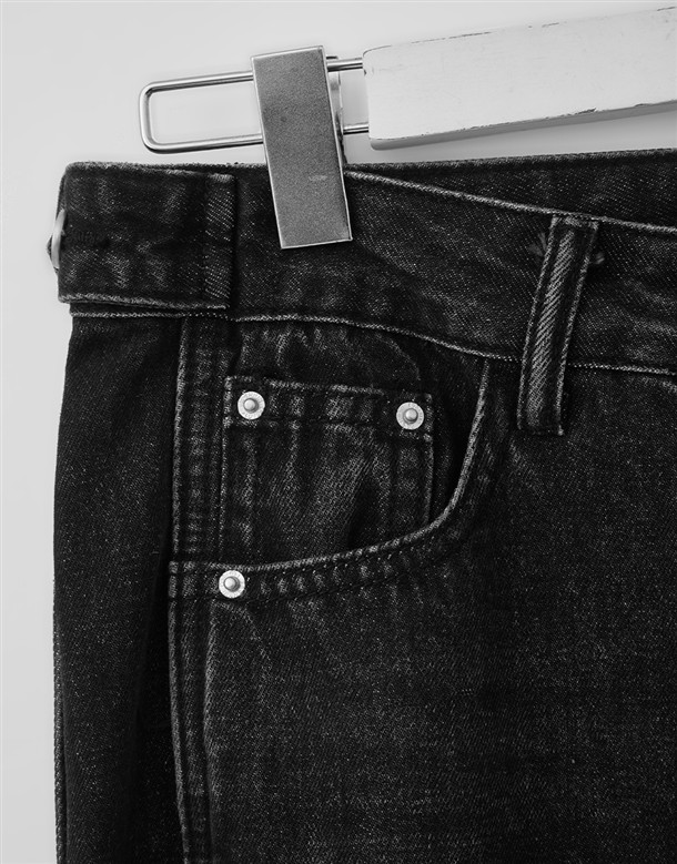 立體側縫線刷色牛仔寬褲