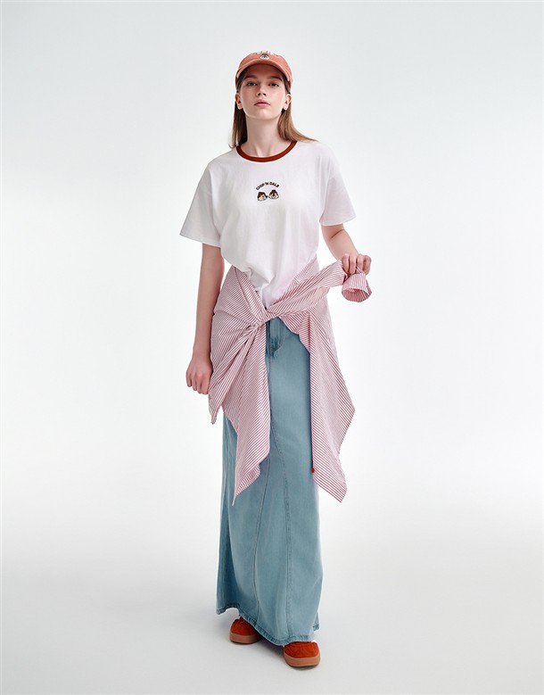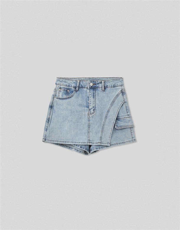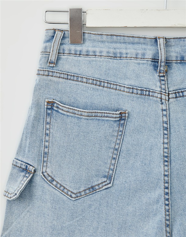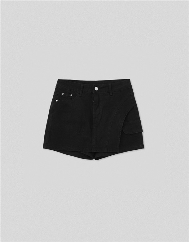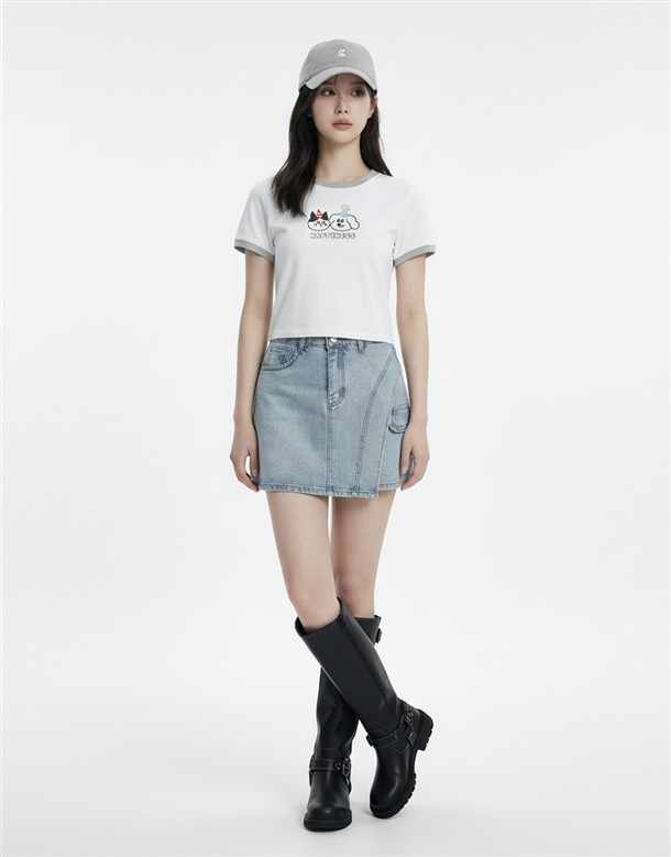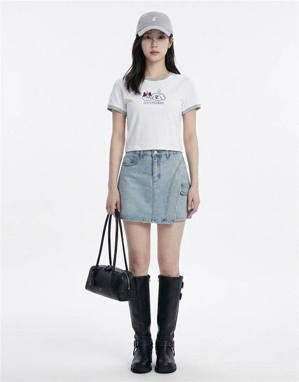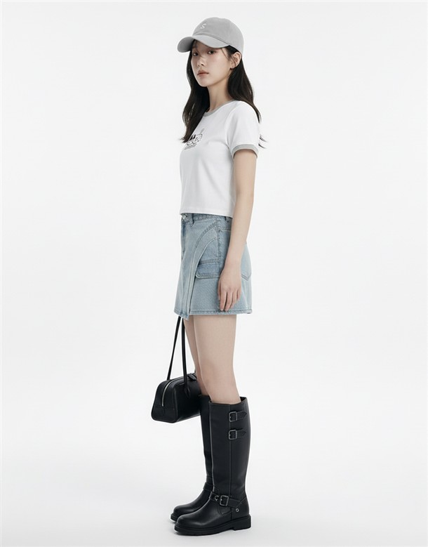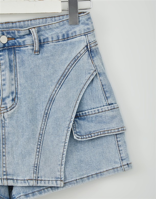 彈力包覆斜切牛仔褲裙
