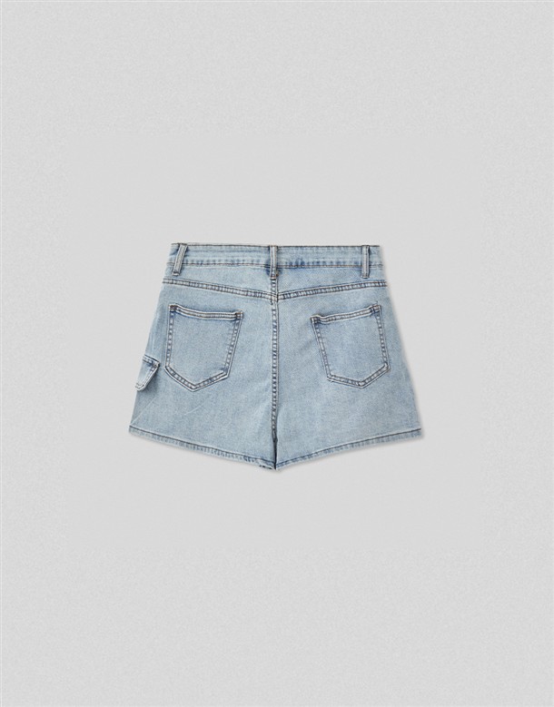高腰彈力包覆斜紋短褲