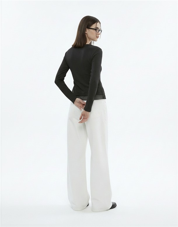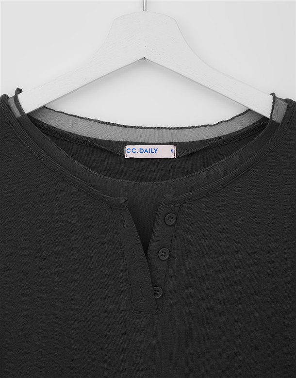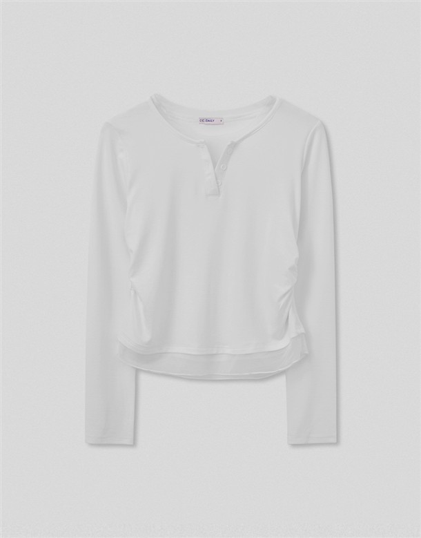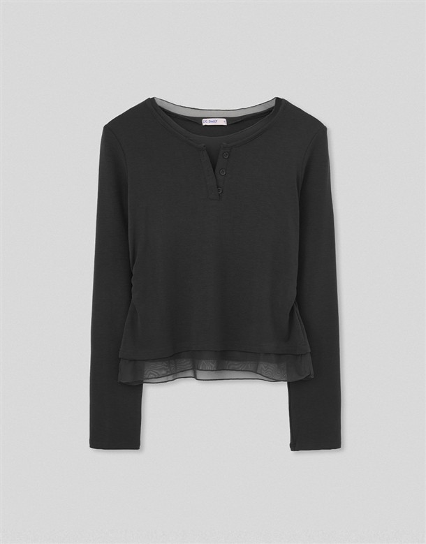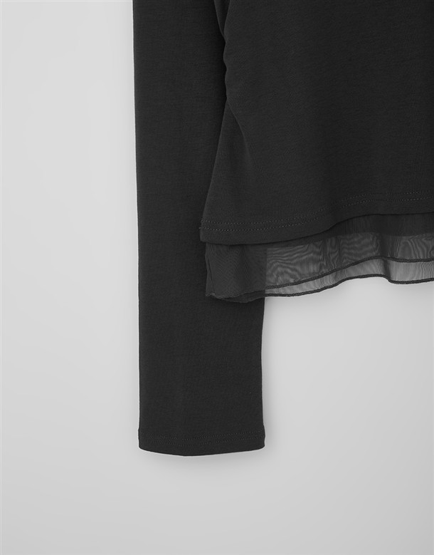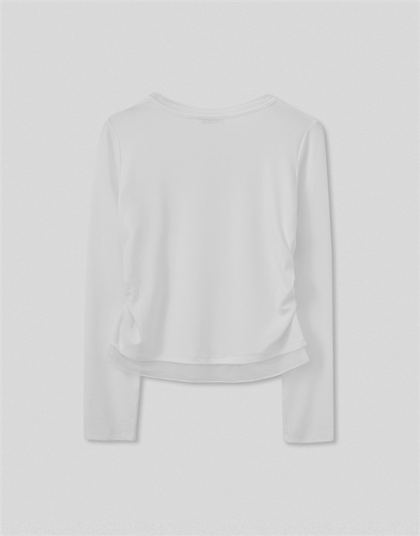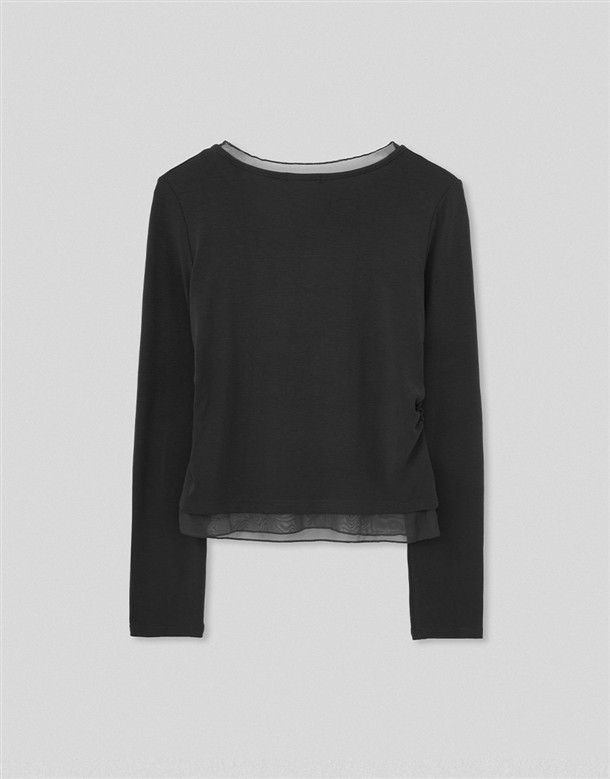 網紗拼接腰抽皺造型上衣
