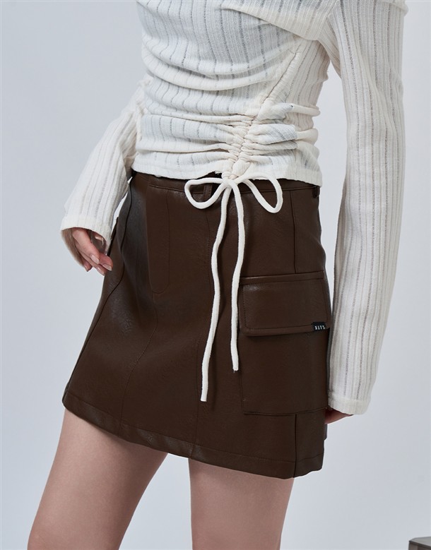 貼袋剪裁A字皮裙