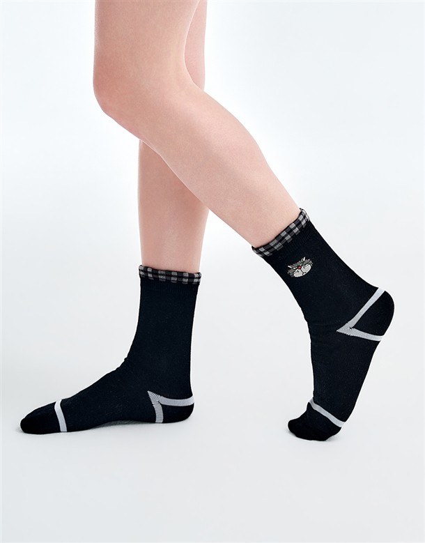 MIT 魯斯佛格紋拼色中長襪