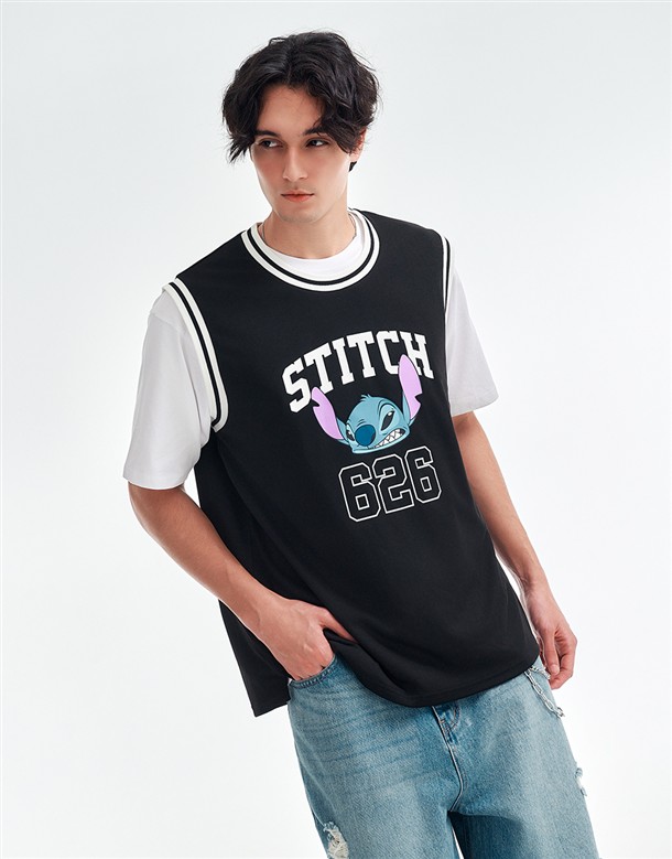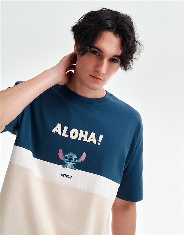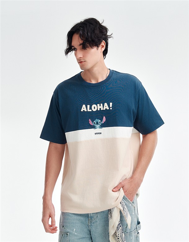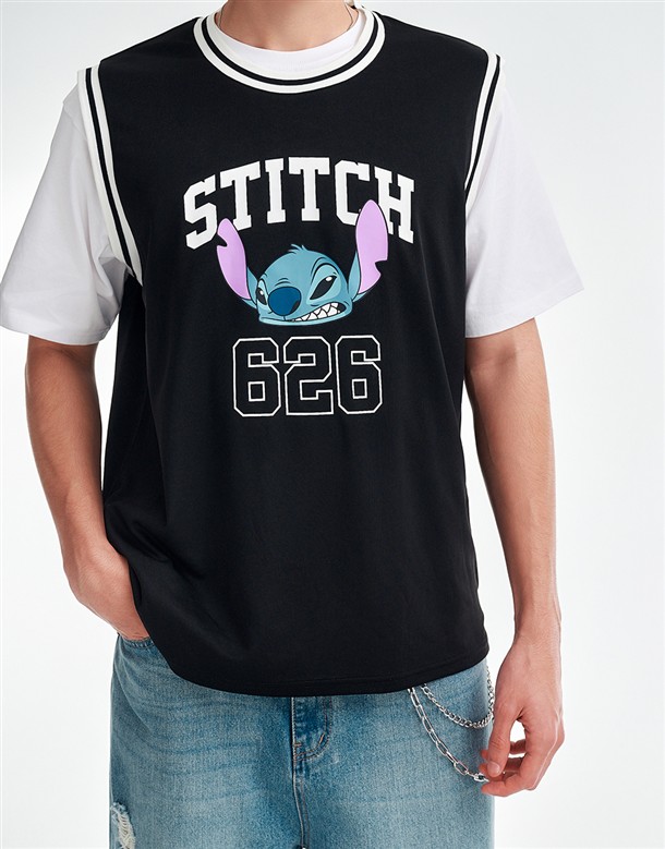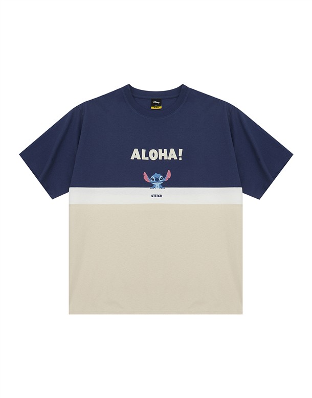史迪奇剪接撞色短T