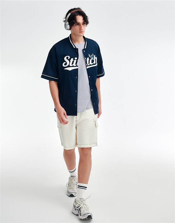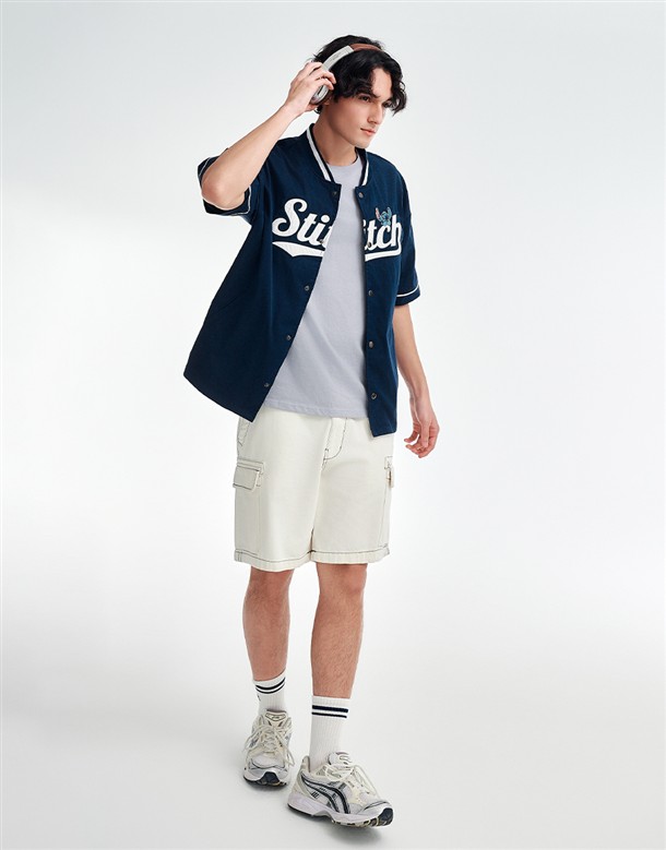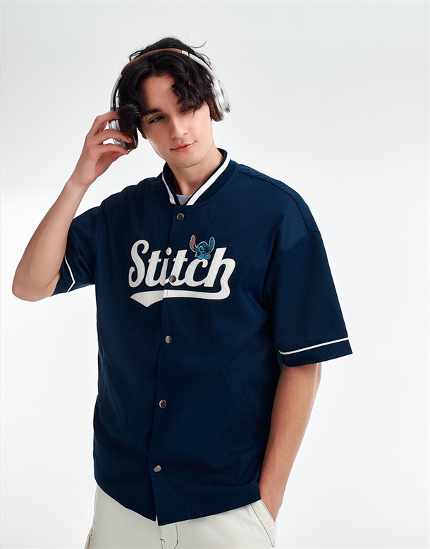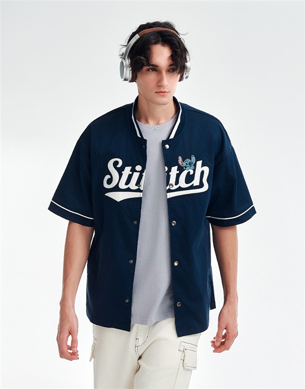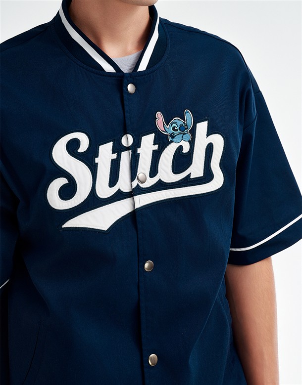 史迪奇撞色領棒球衫