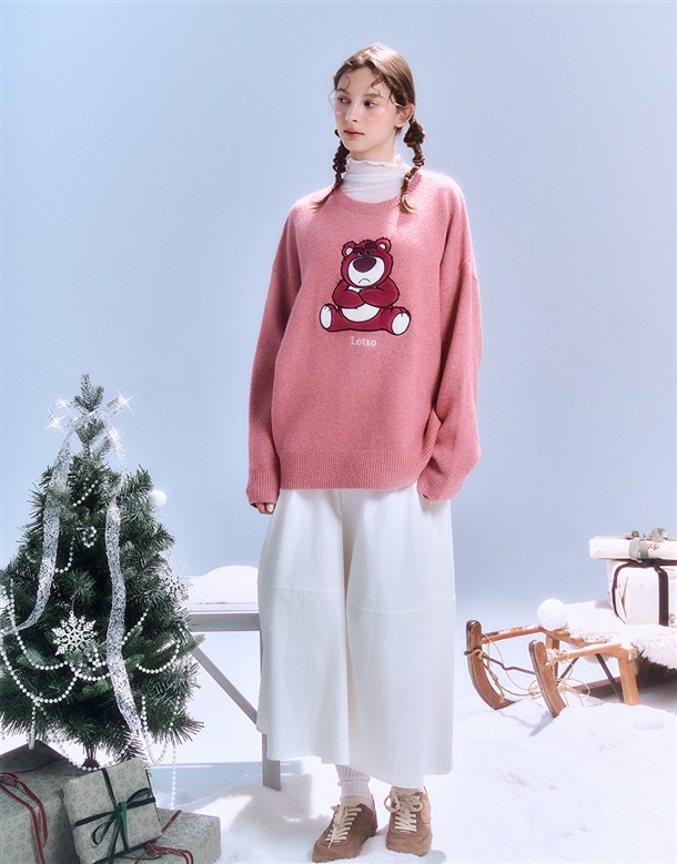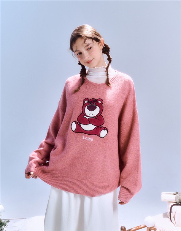 熊抱哥落肩貼布繡毛衣‧情侶款(女)