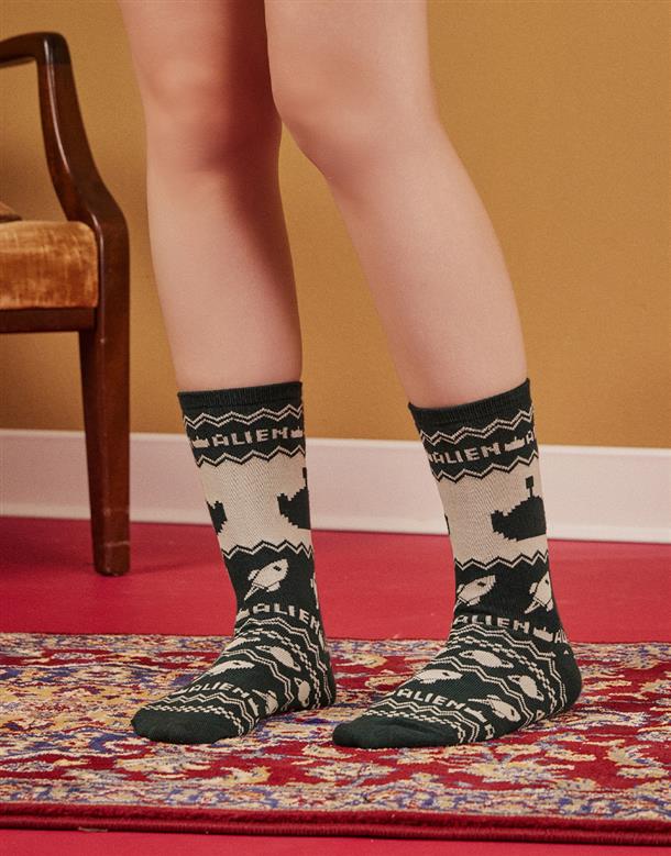 MIT 奇奇蒂蒂撞色中長襪‧親子款(女)