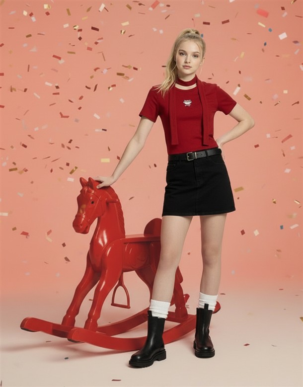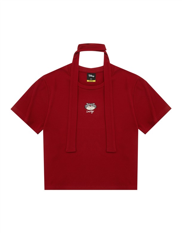 胡迪紅心落肩短T