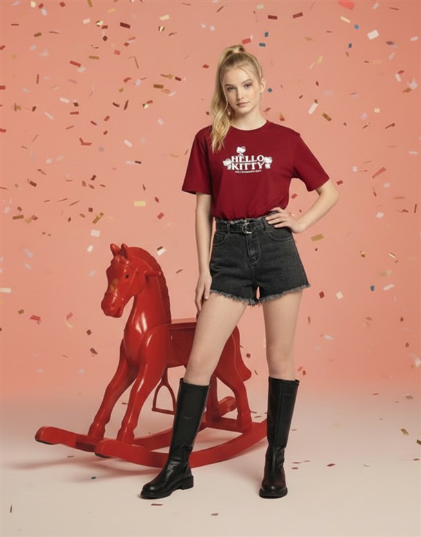 凱蒂貓落肩寬鬆T