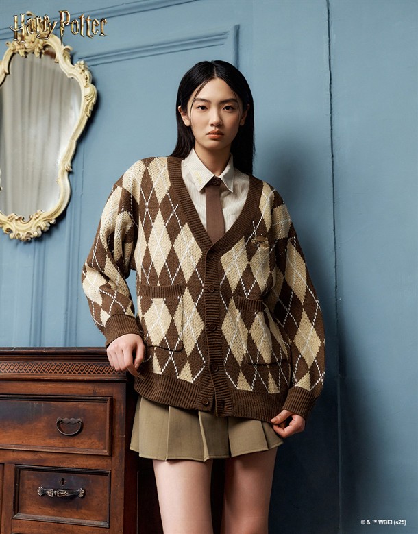 哈利波特菱格V領開襟外套