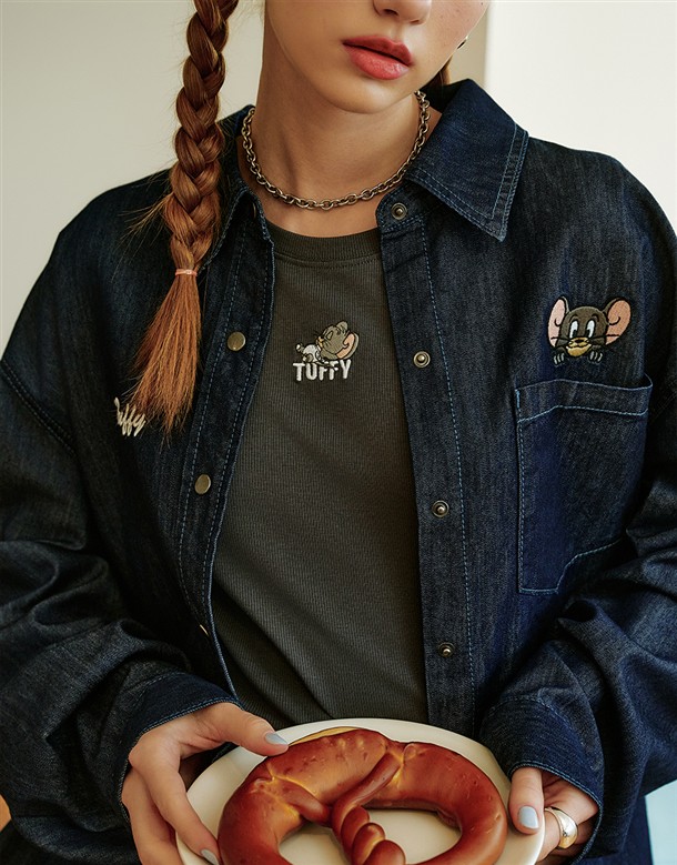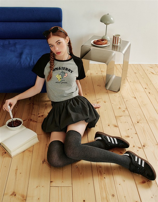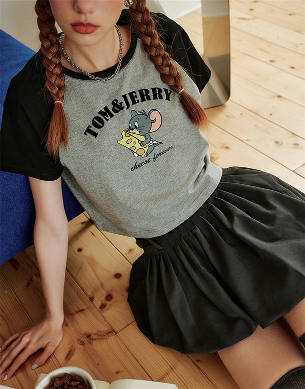 泰菲魔鬼氈布章撞色短T‧親子款(女)