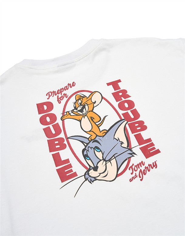 湯姆貓傑利鼠水洗落肩短T
