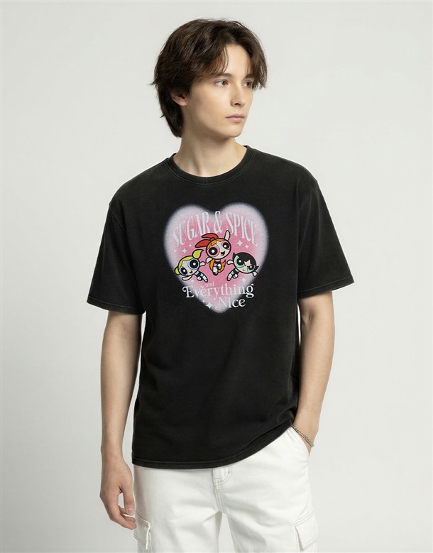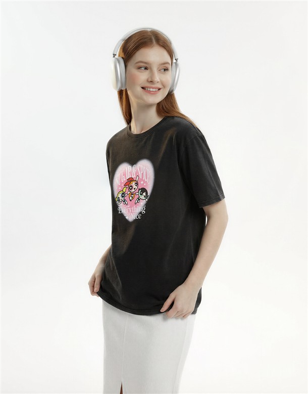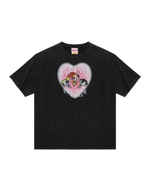 飛天小女警復古水洗寬T