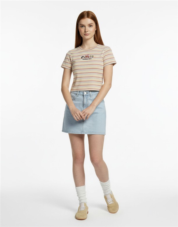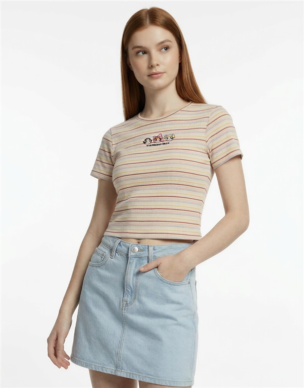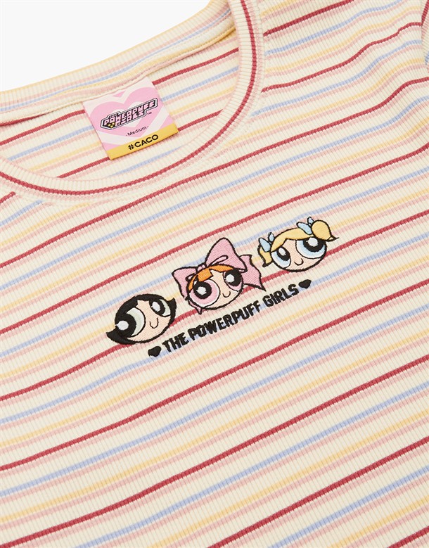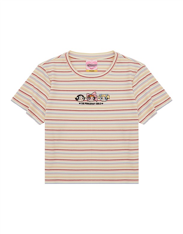 飛天小女警彩條短T