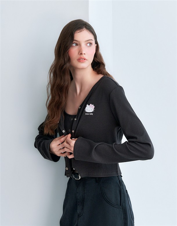 凱蒂貓電繡落肩上衣