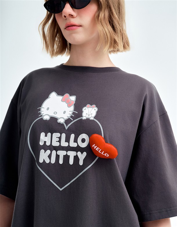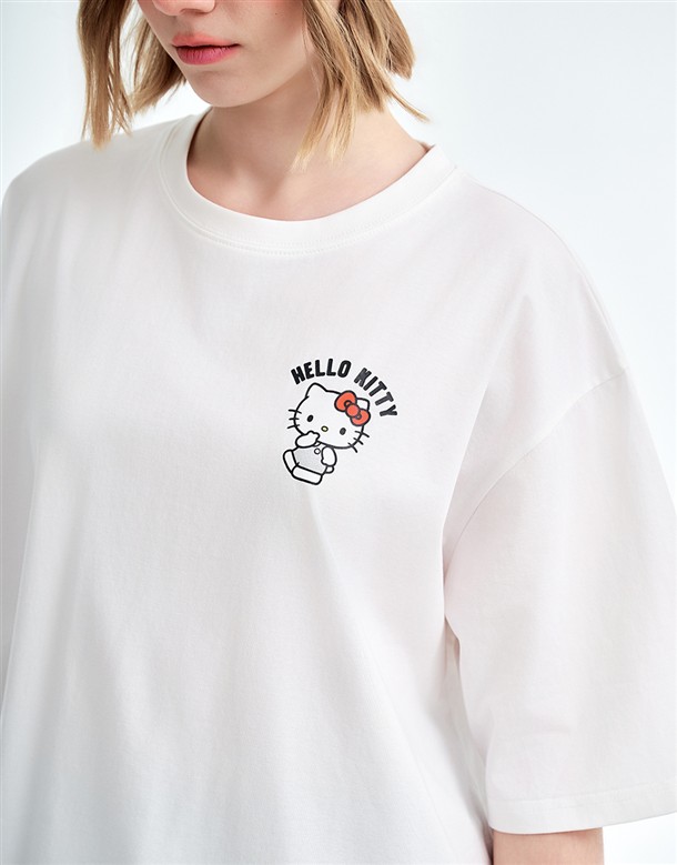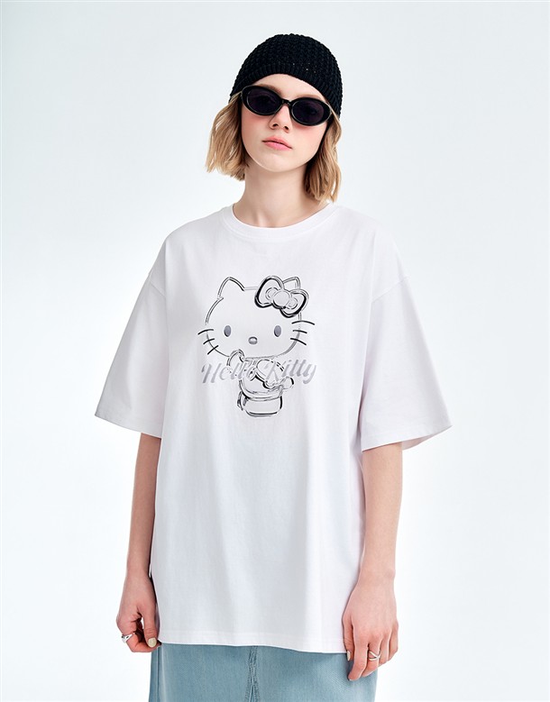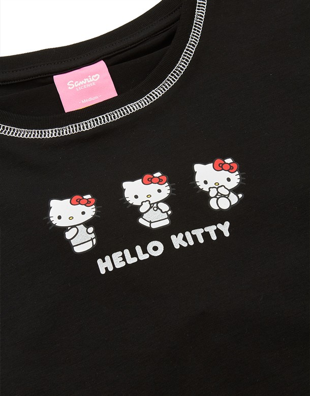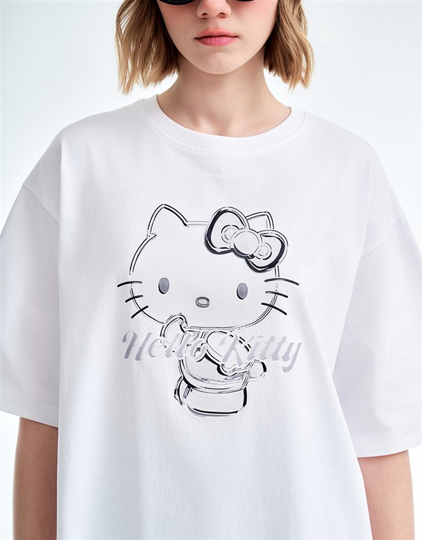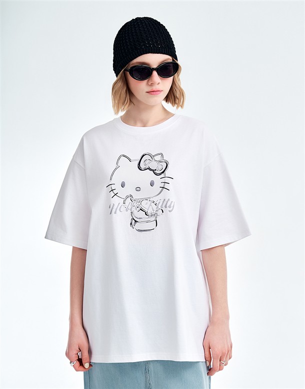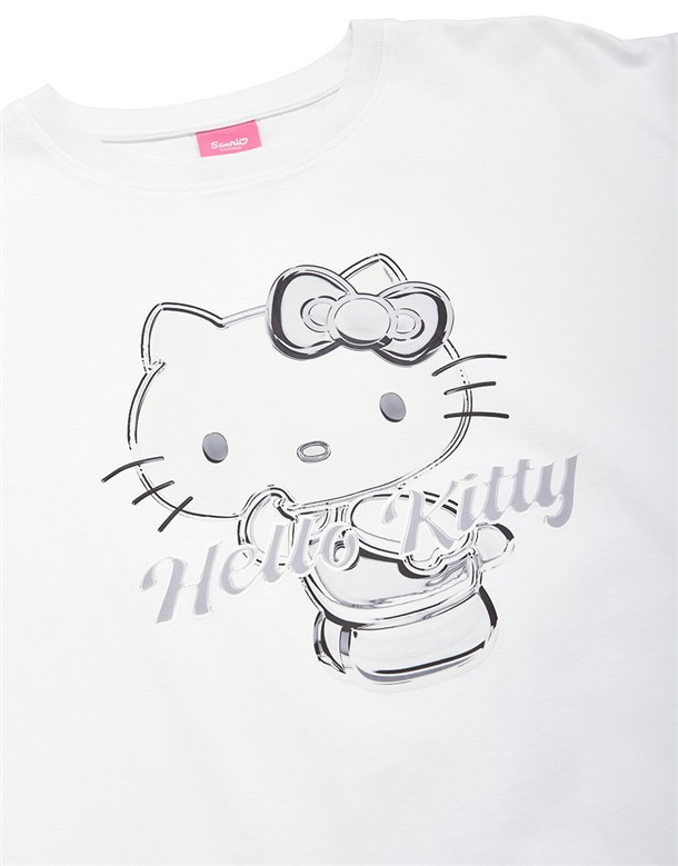 凱蒂貓金屬感印刷落肩T