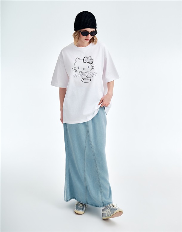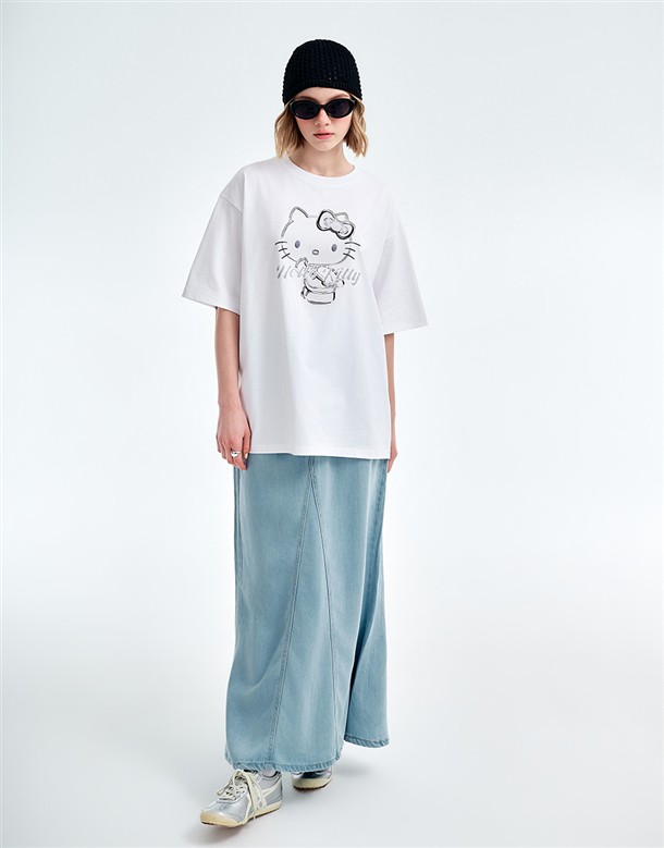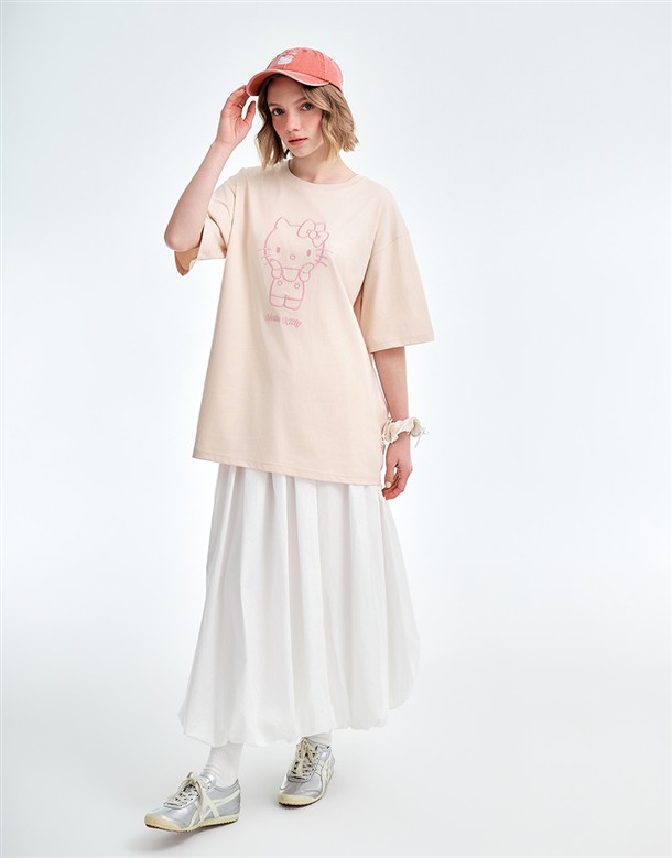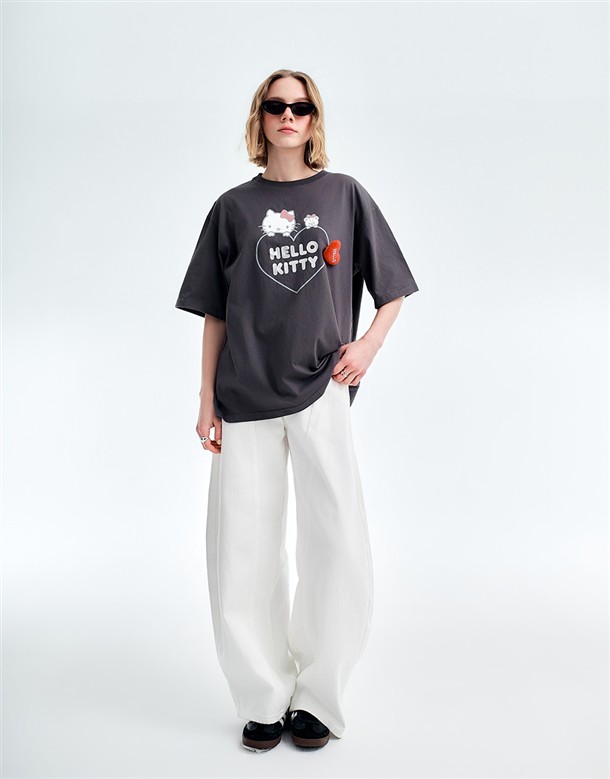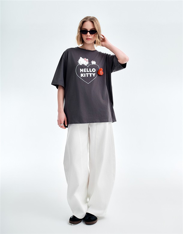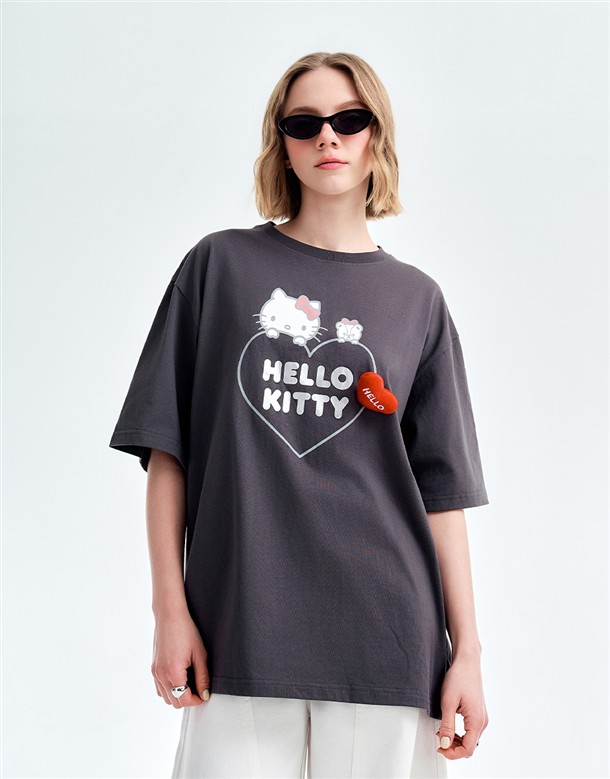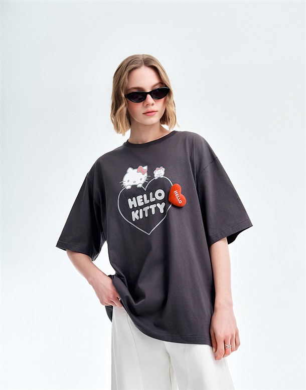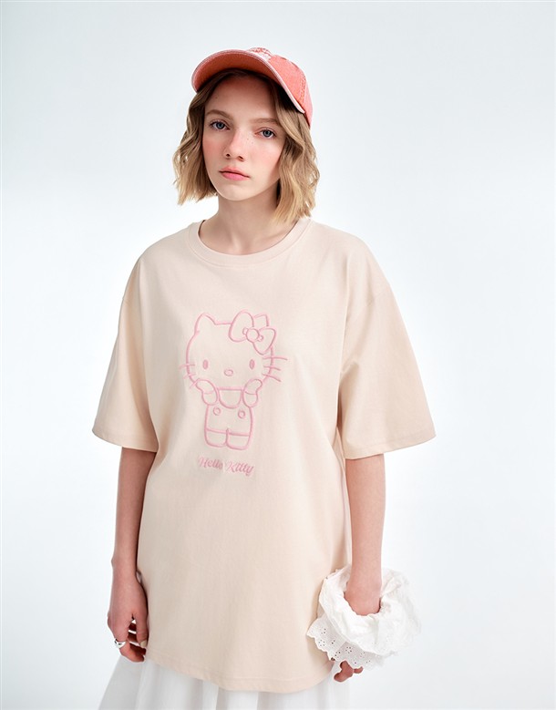 凱蒂貓金屬感印刷落肩T