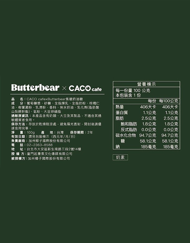 CACO cafe×Butterbear蜂蜜蛋糕脆餅禮盒