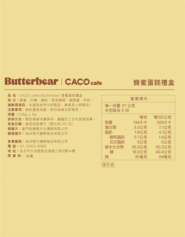 CACO cafe×Butterbear蜂蜜蛋糕禮盒