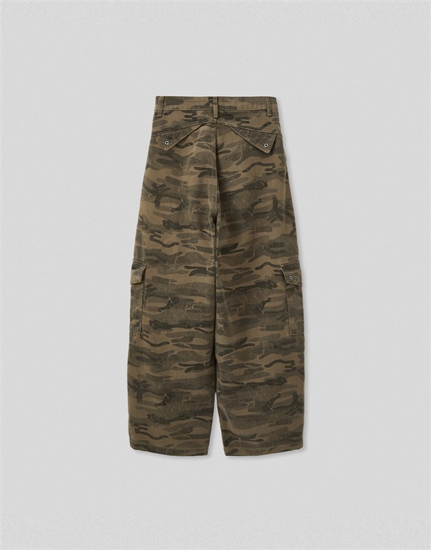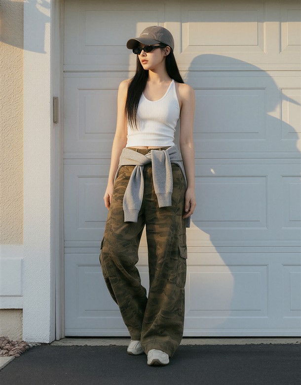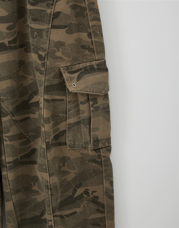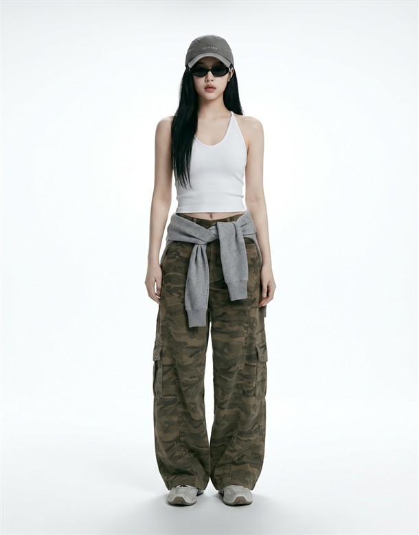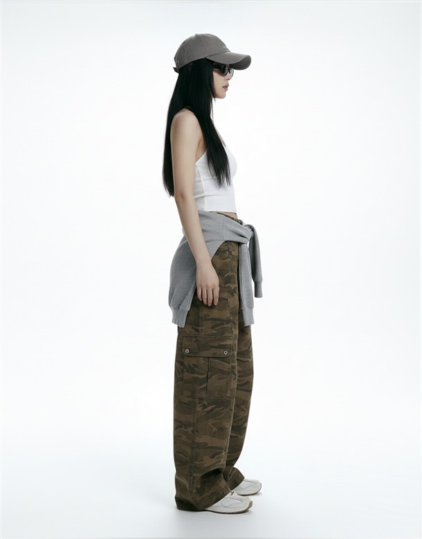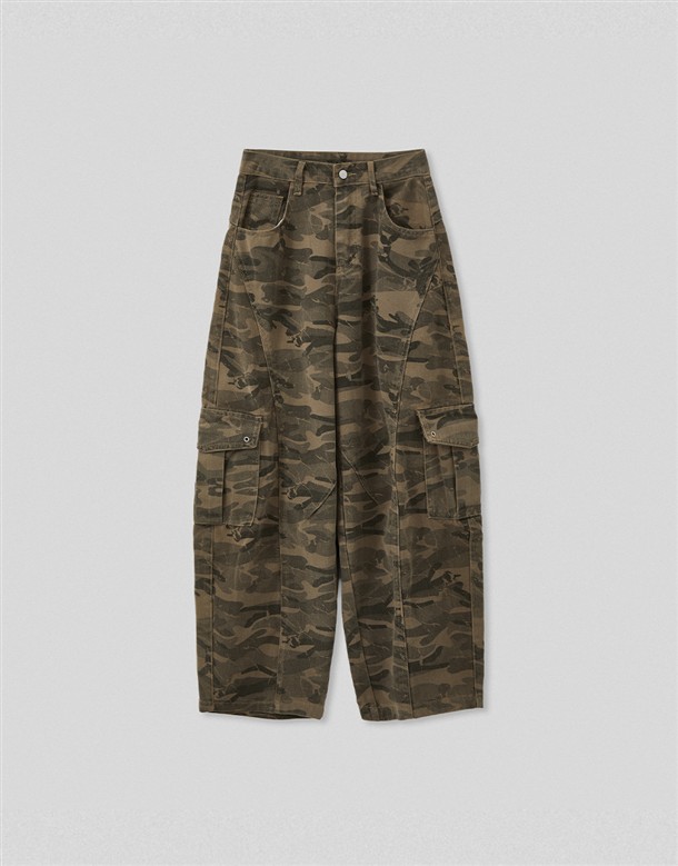 洗舊迷彩工裝寬鬆繭型褲