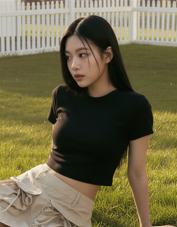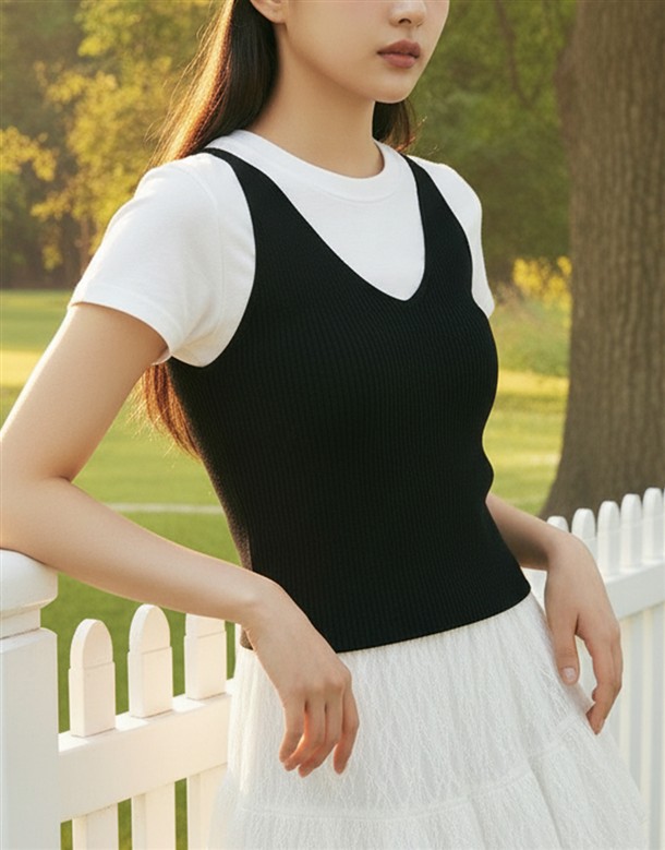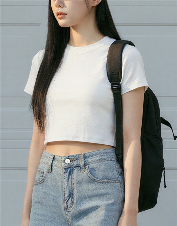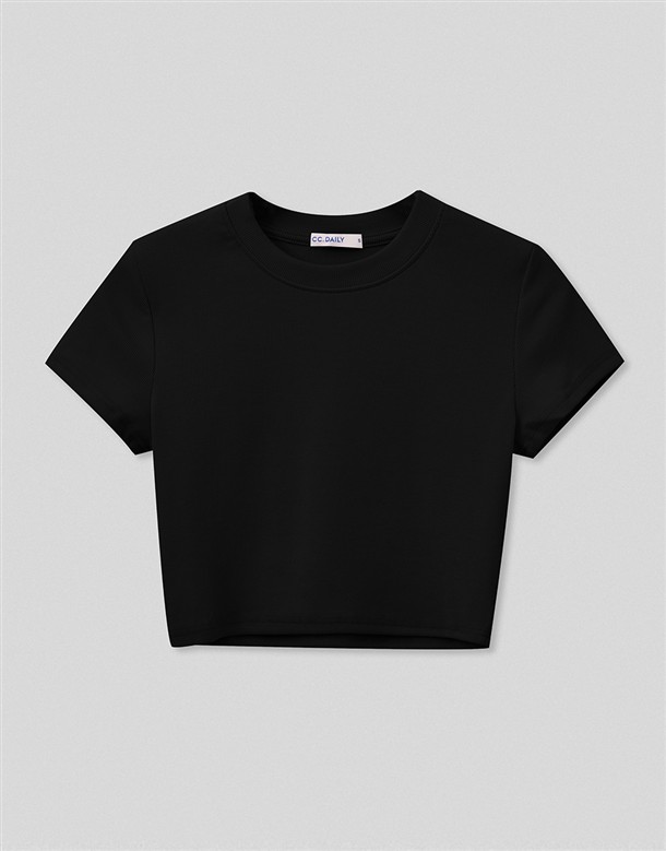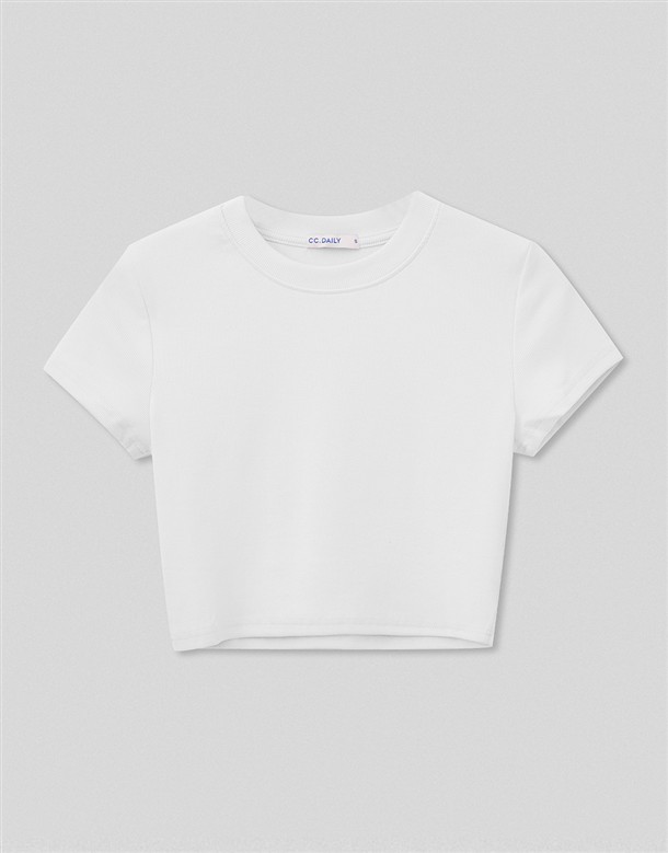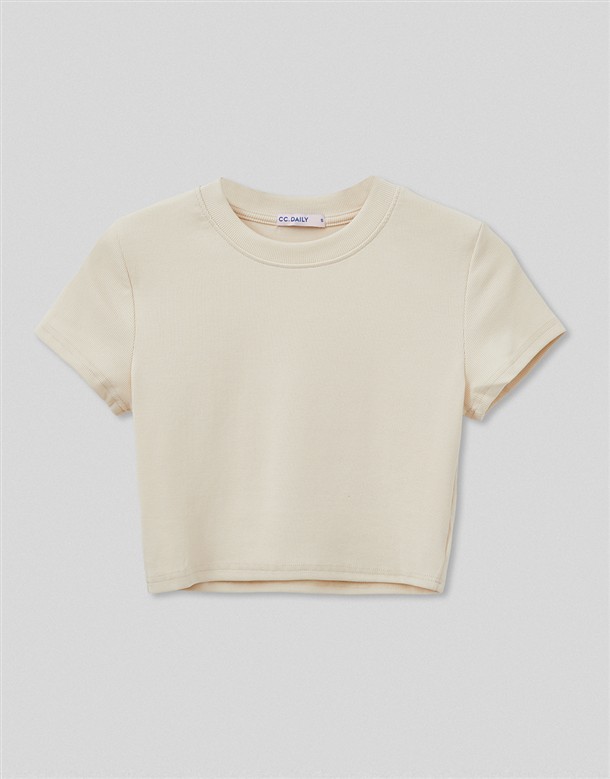 圓領坑紋短版T