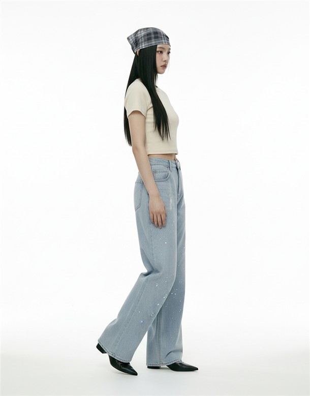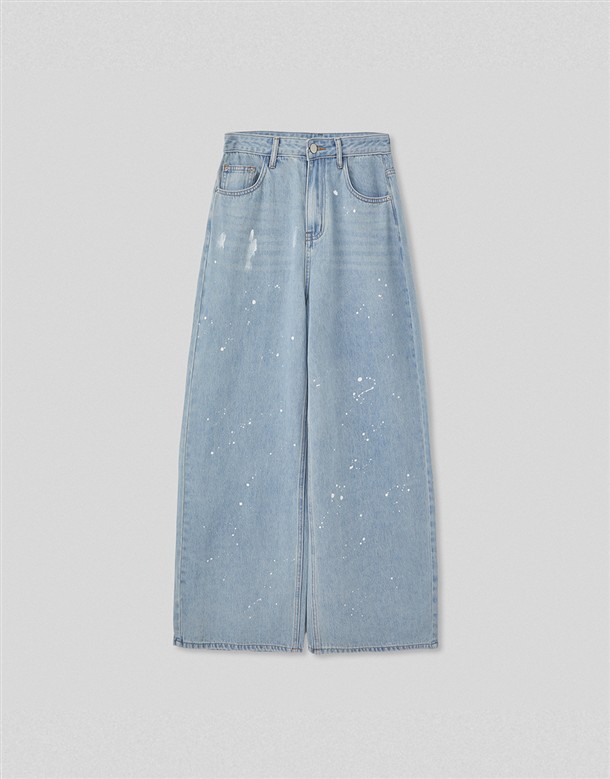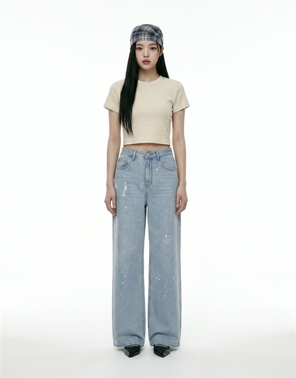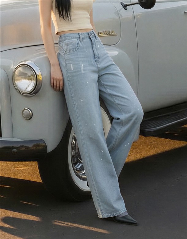 潑墨水洗牛仔寬褲