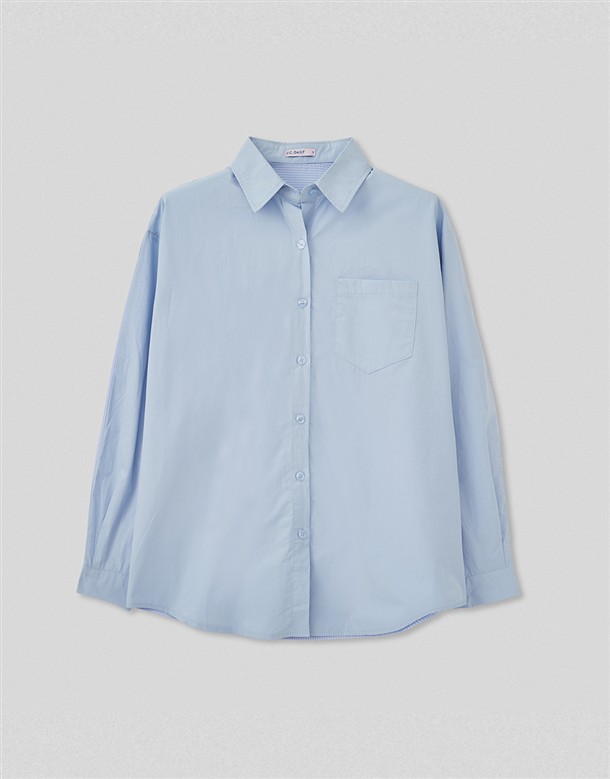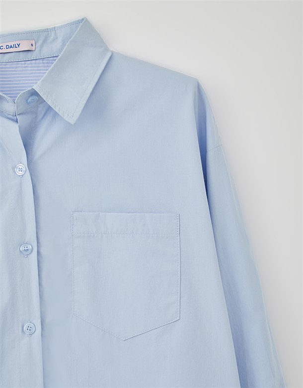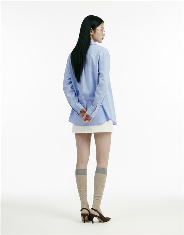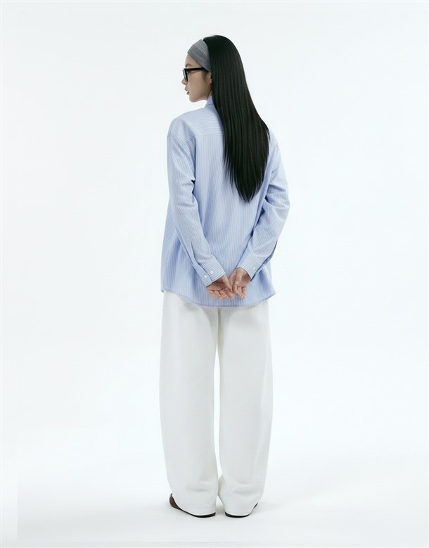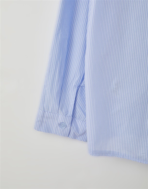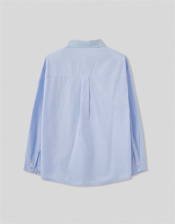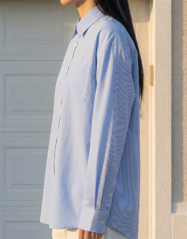 素面剪接條紋襯衫