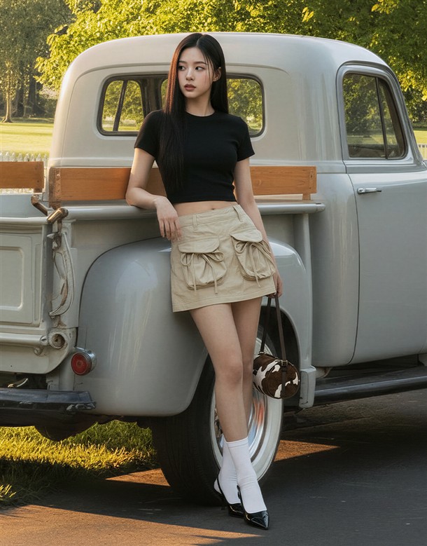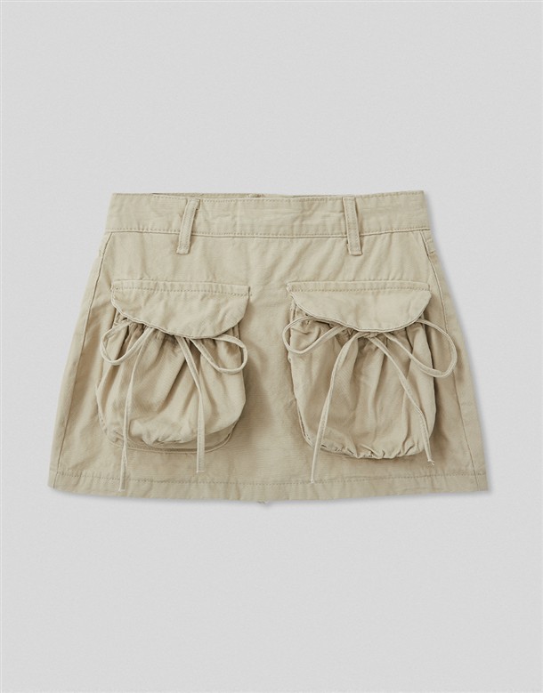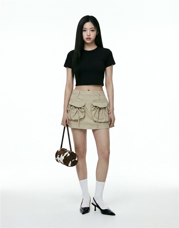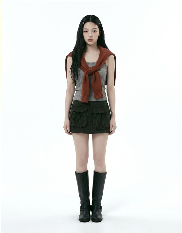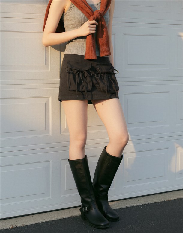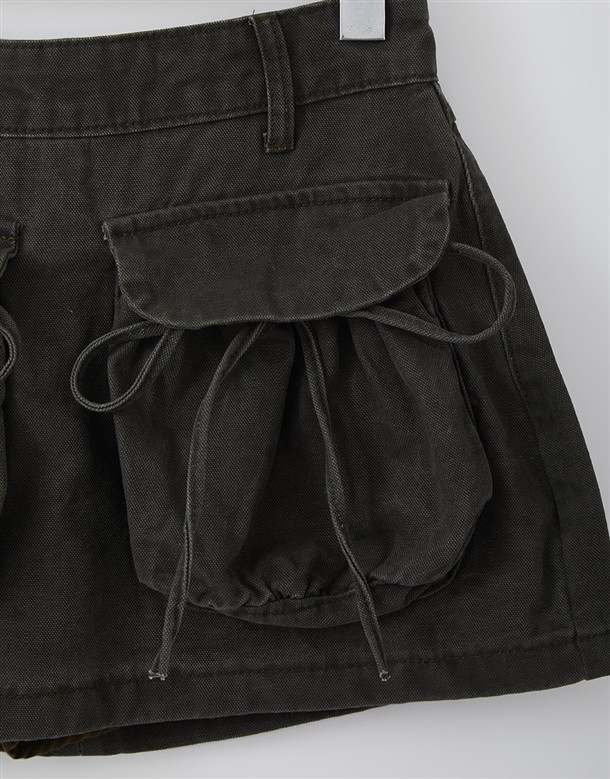 大口袋綁結挺版短裙