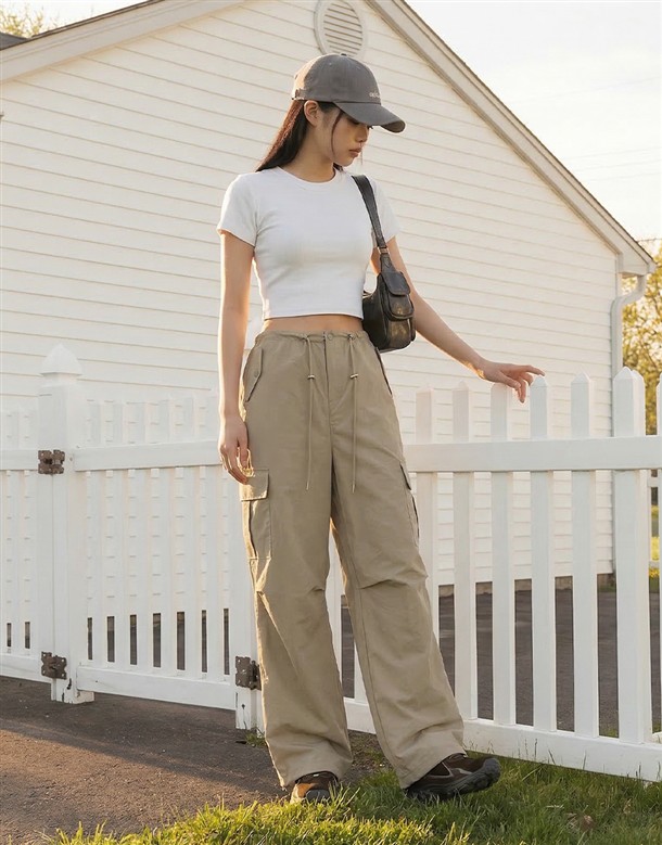 抽繩輕量工裝褲