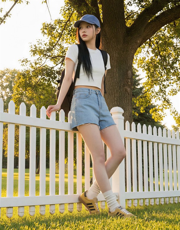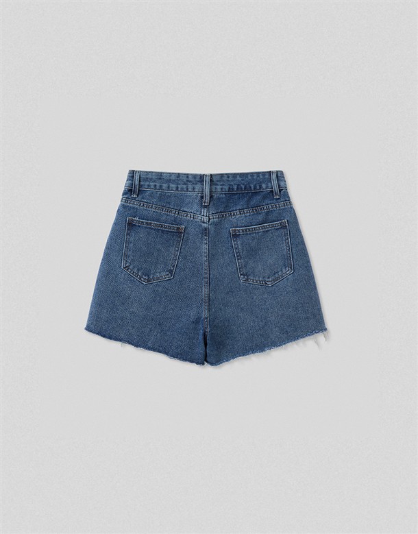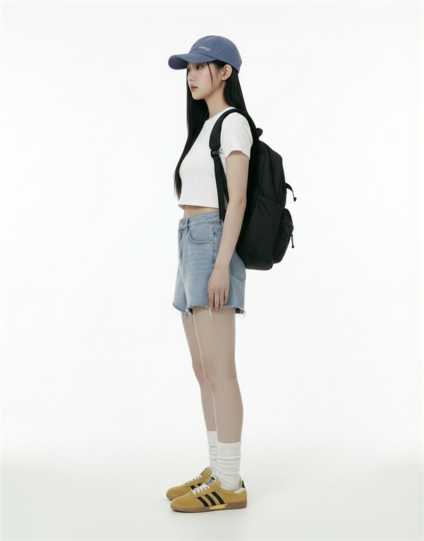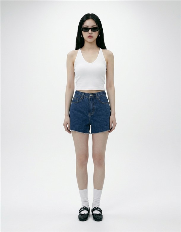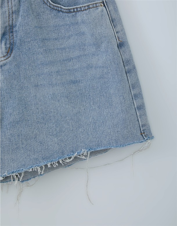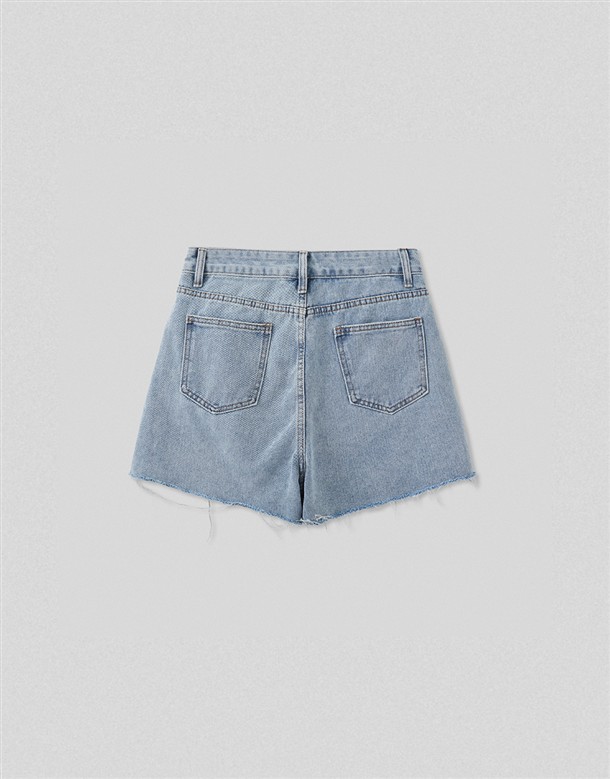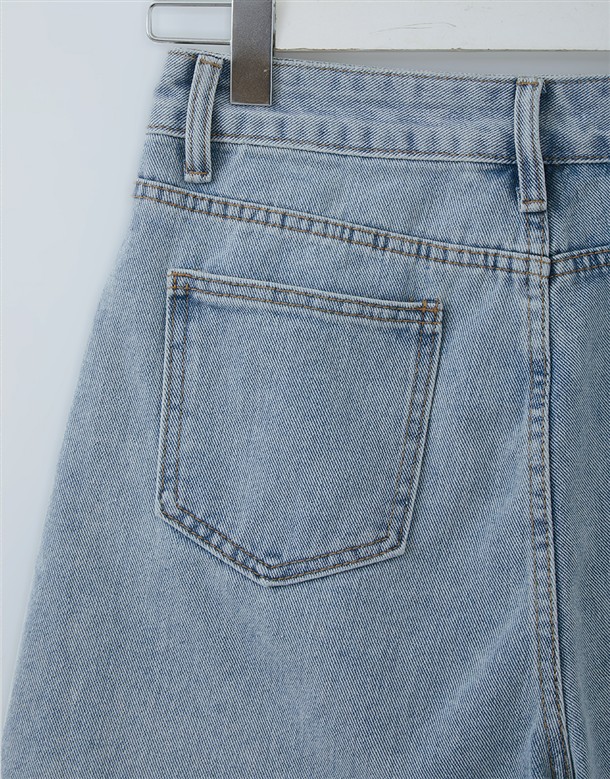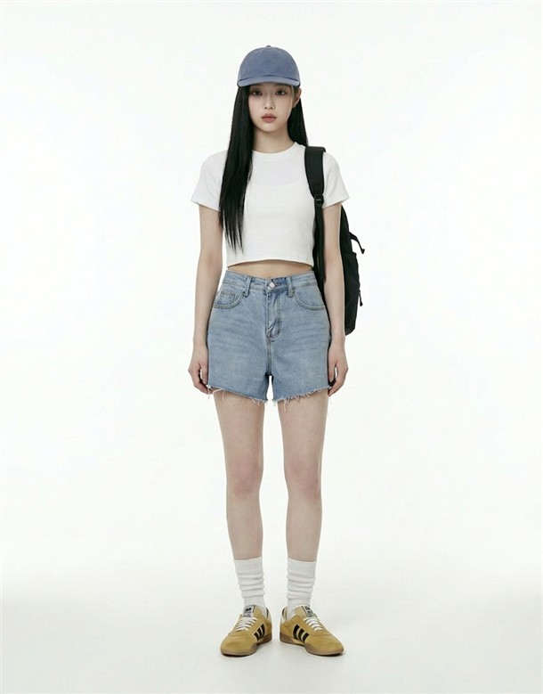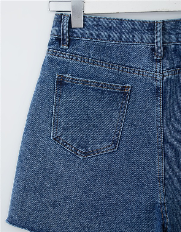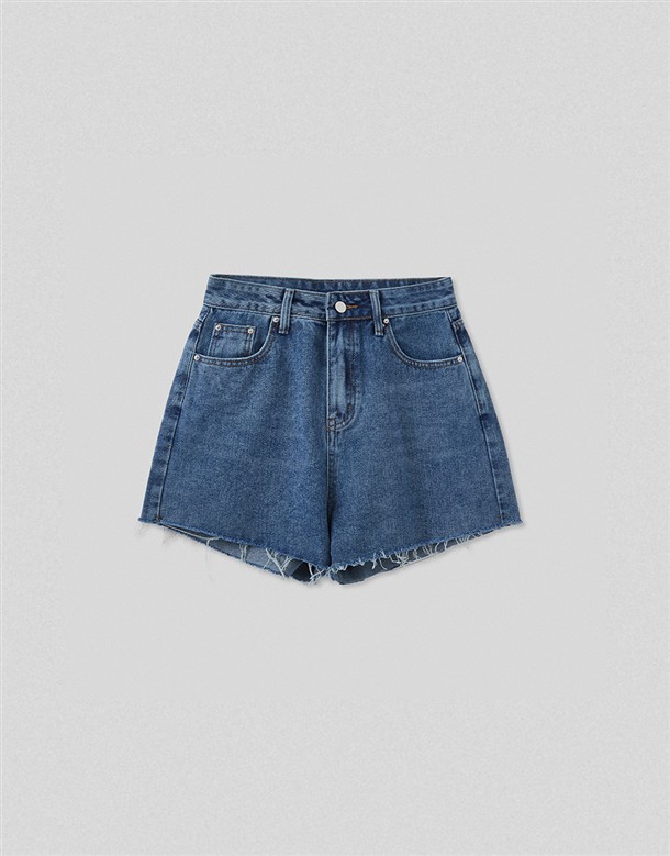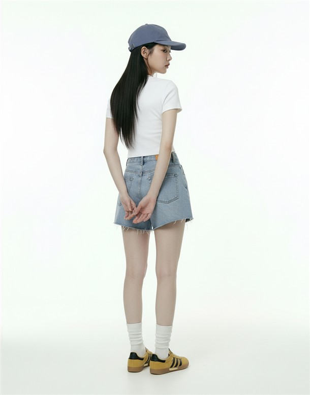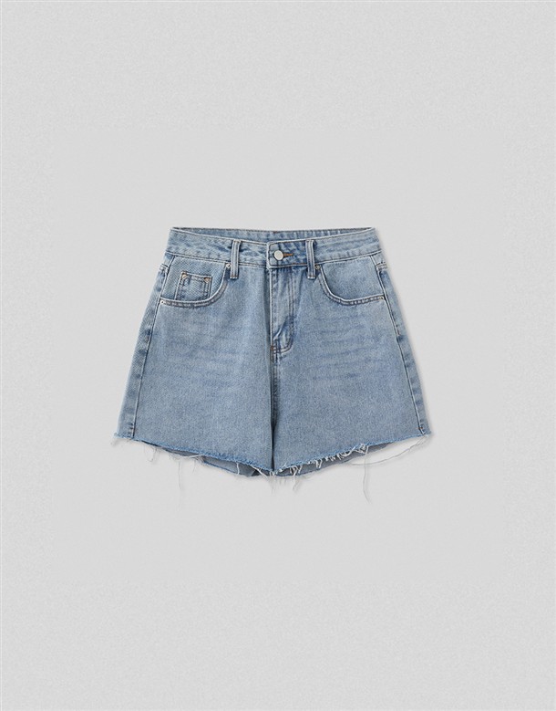 挺版不修邊寬口牛仔短褲