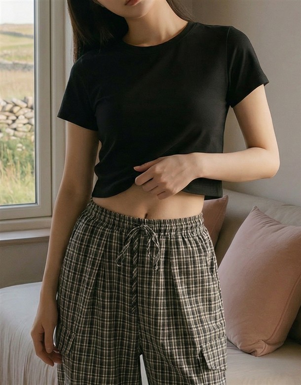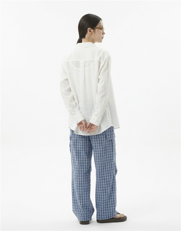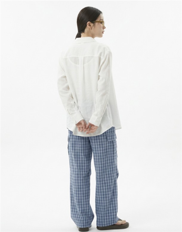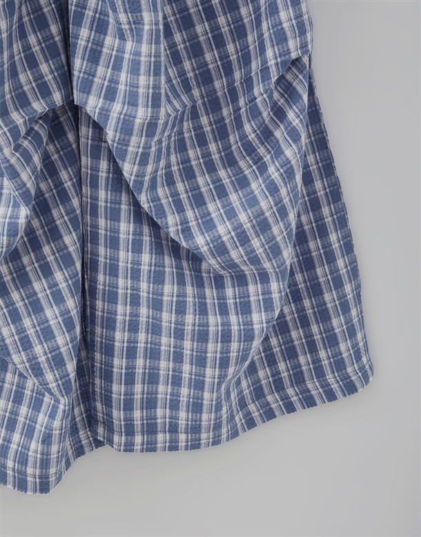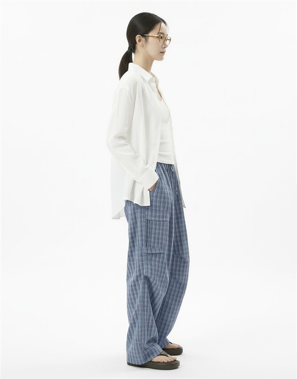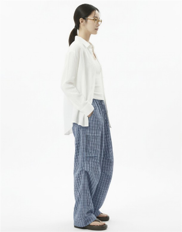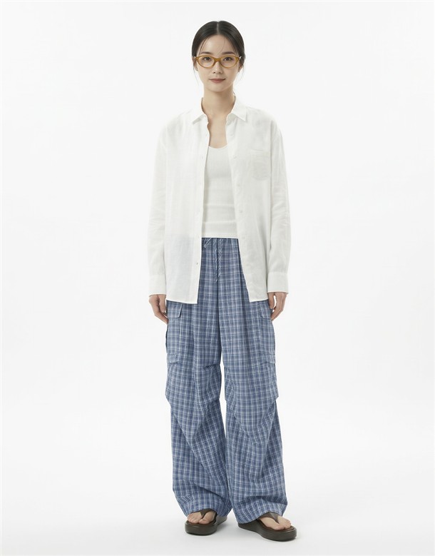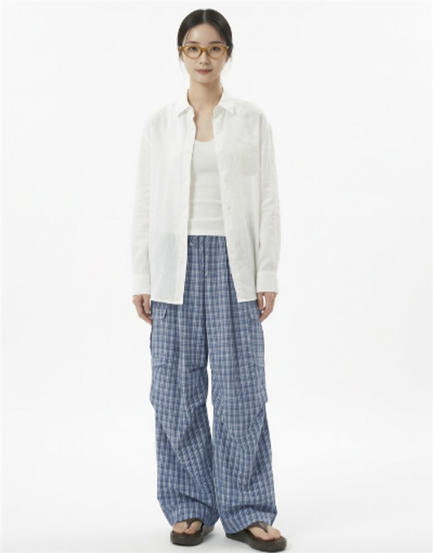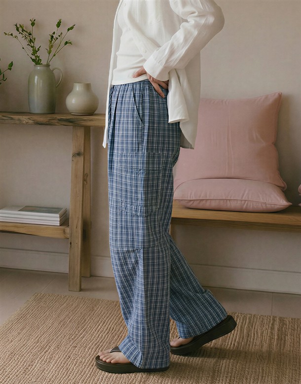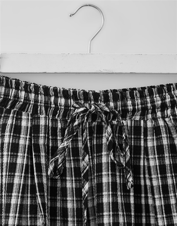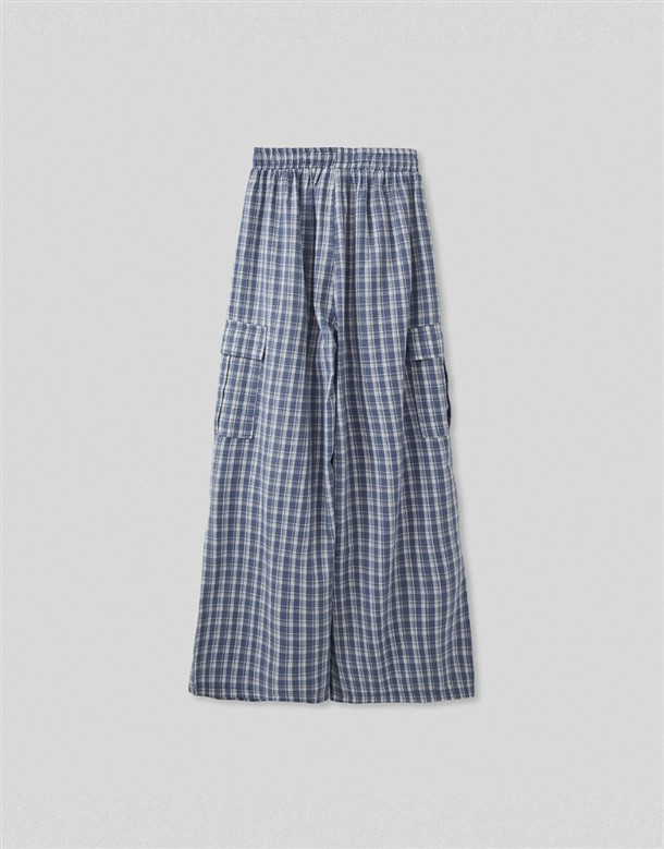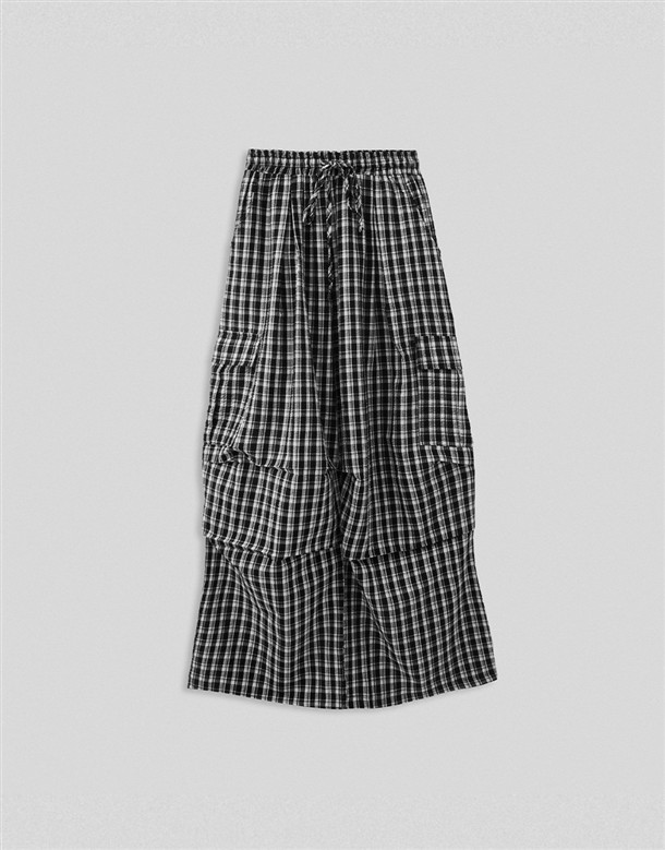 皺皺打褶格紋工裝褲