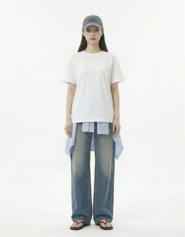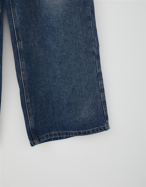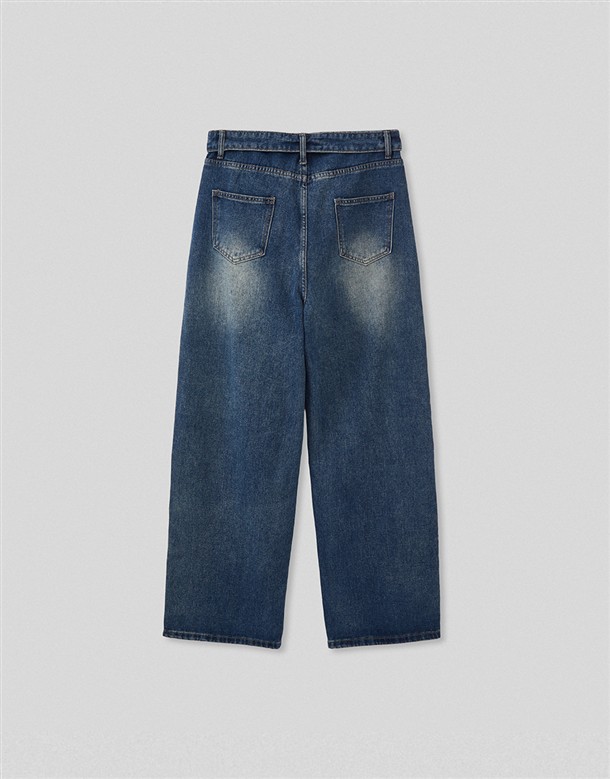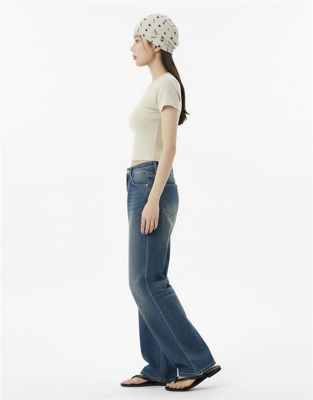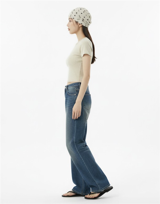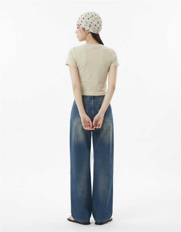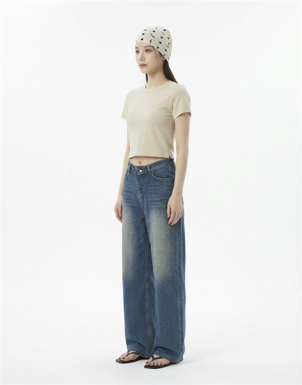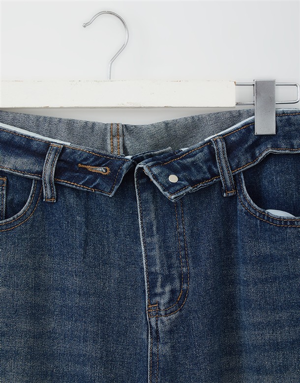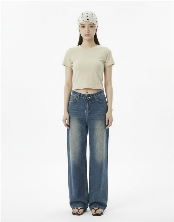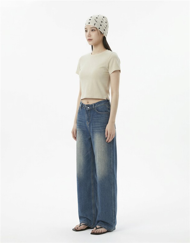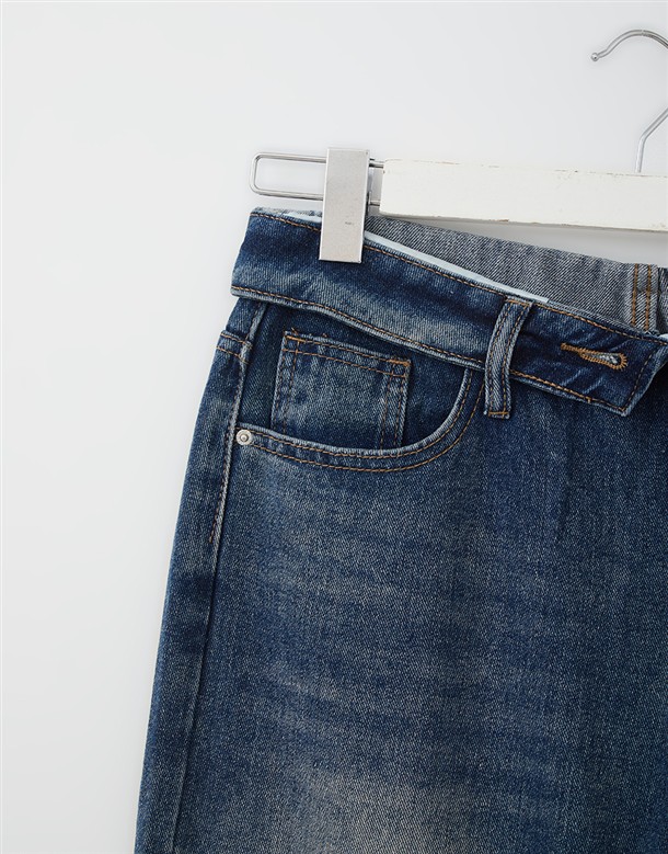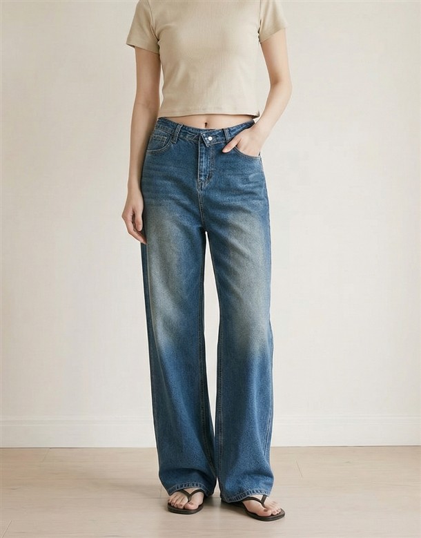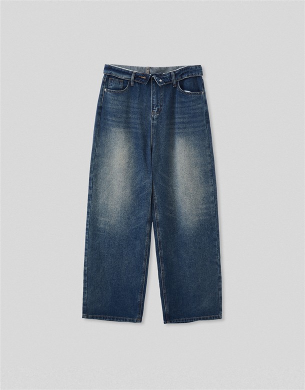 反摺腰頭設計牛仔寬褲