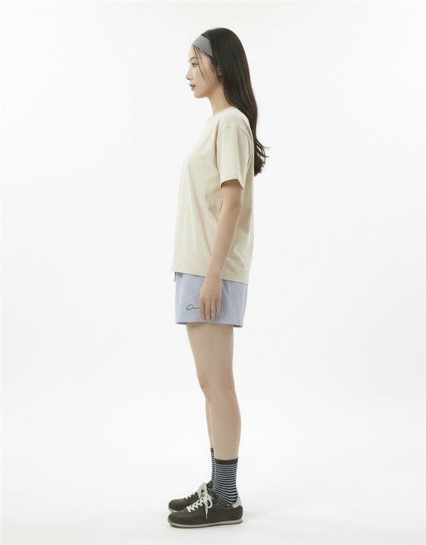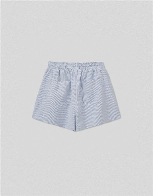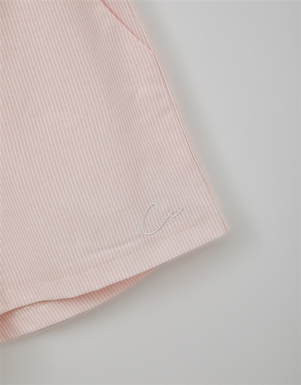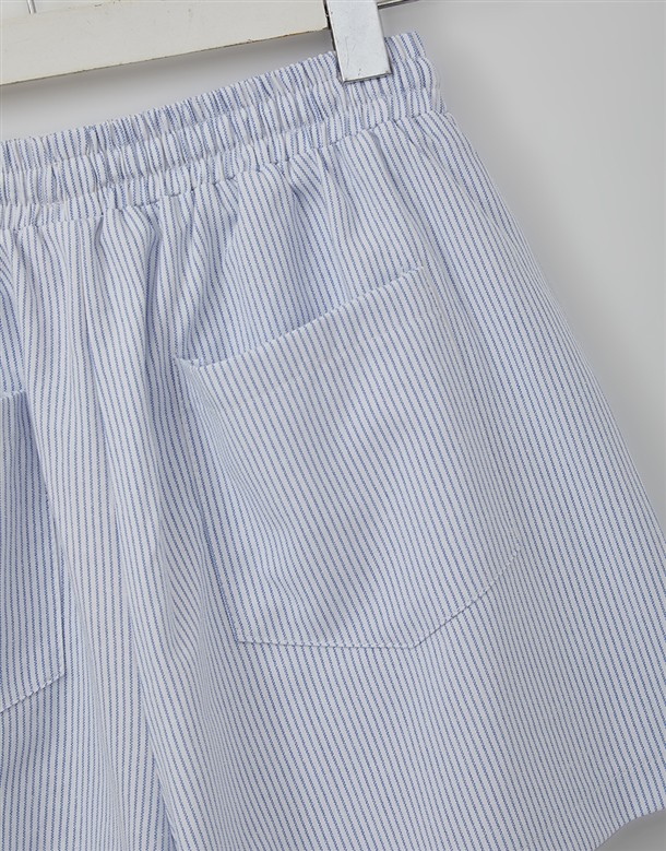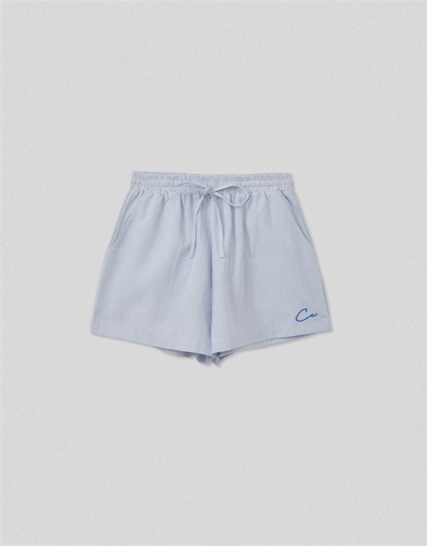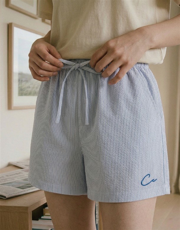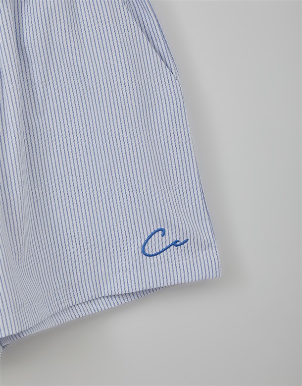 細條電繡牛津布短褲