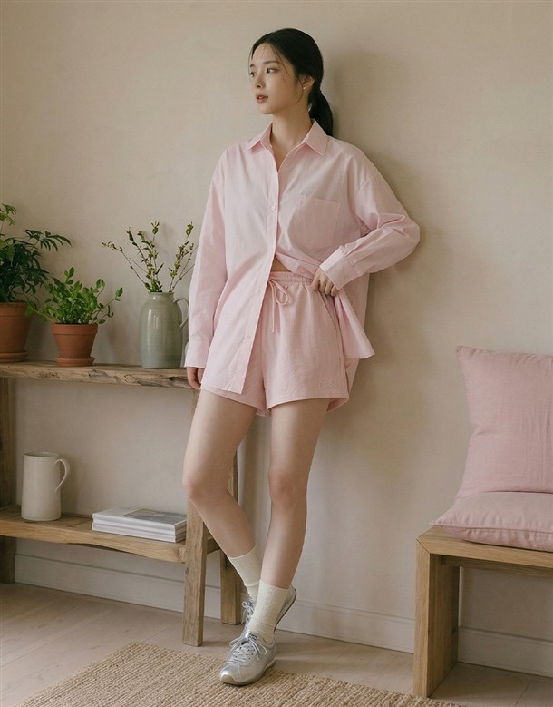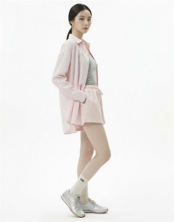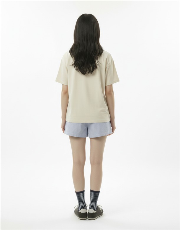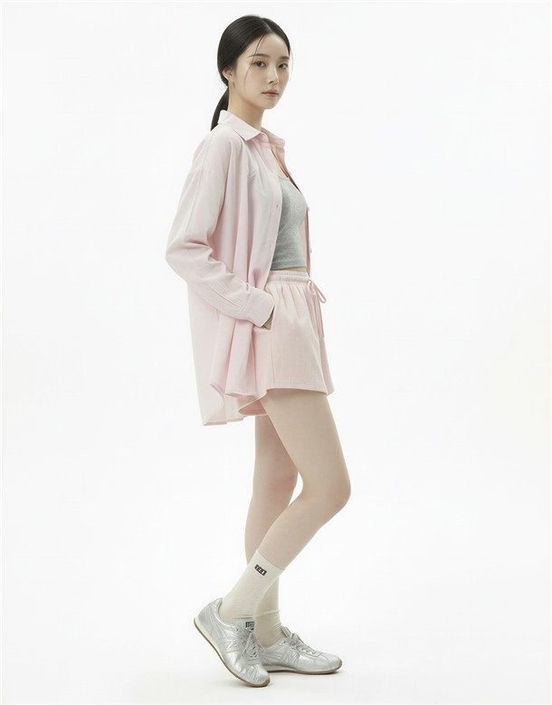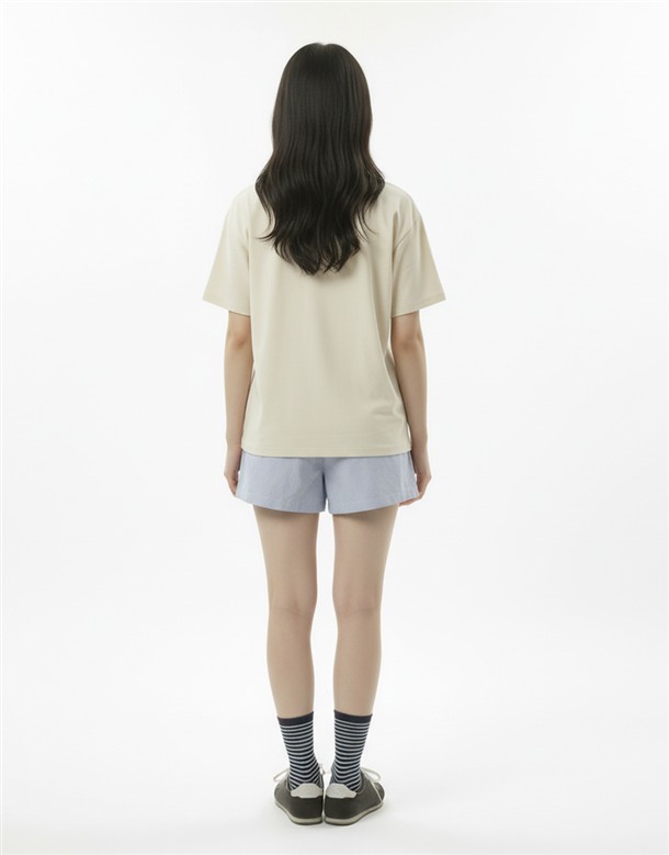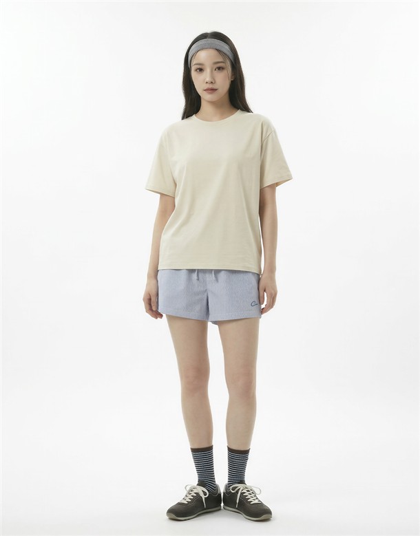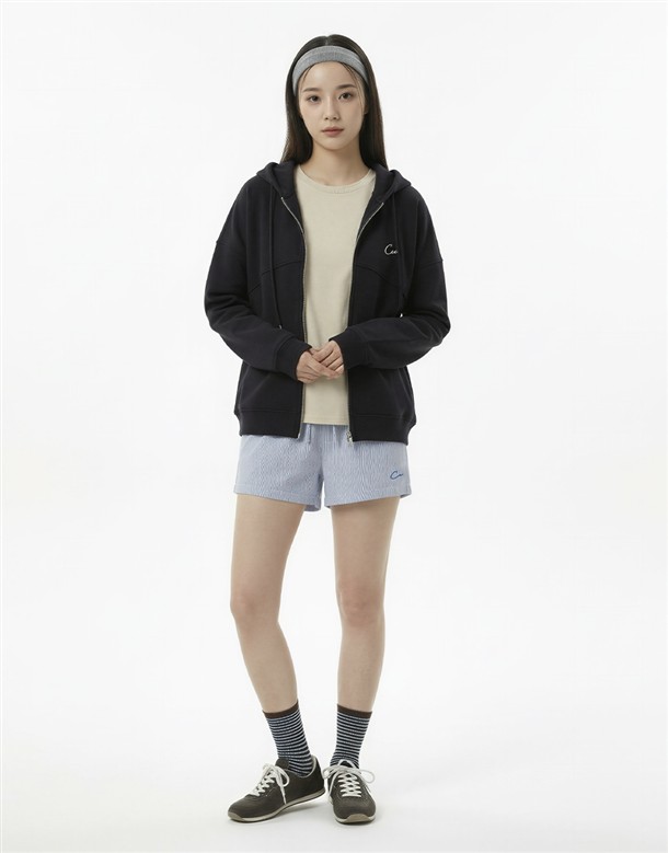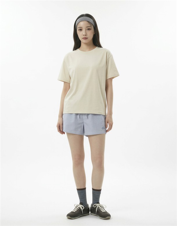 細條電繡牛津布短褲
