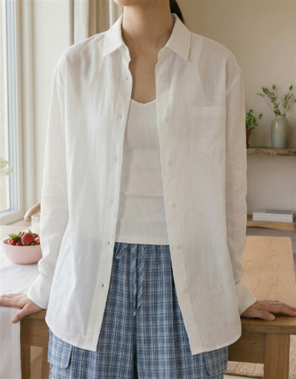薄透開衩雪紡襯衫