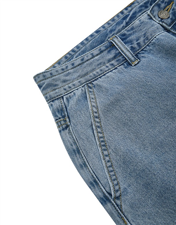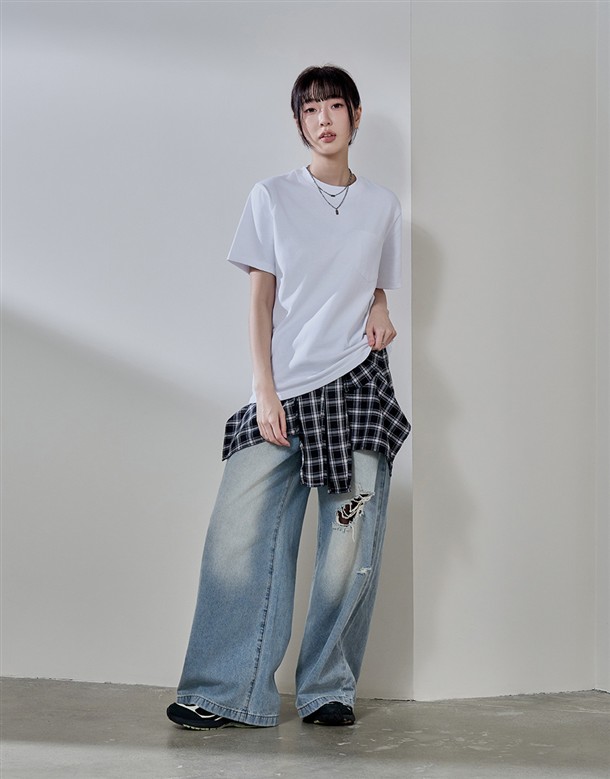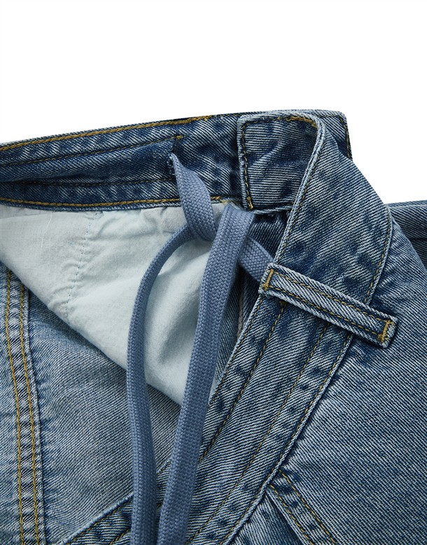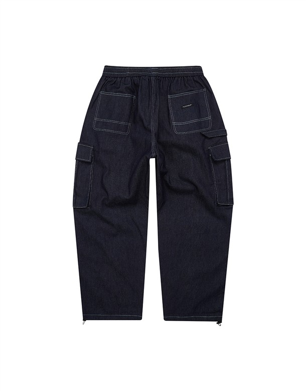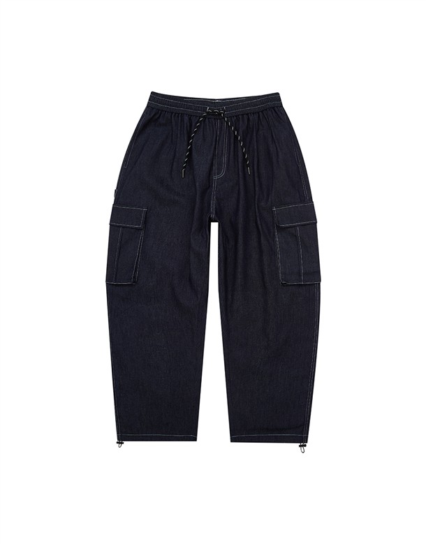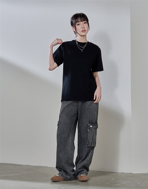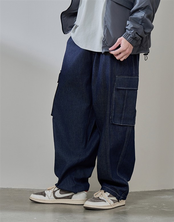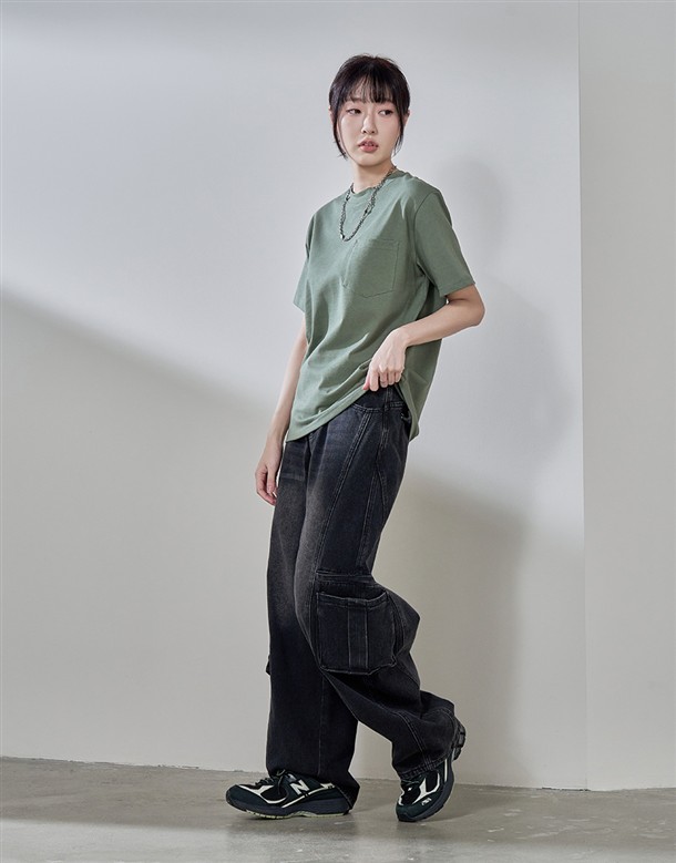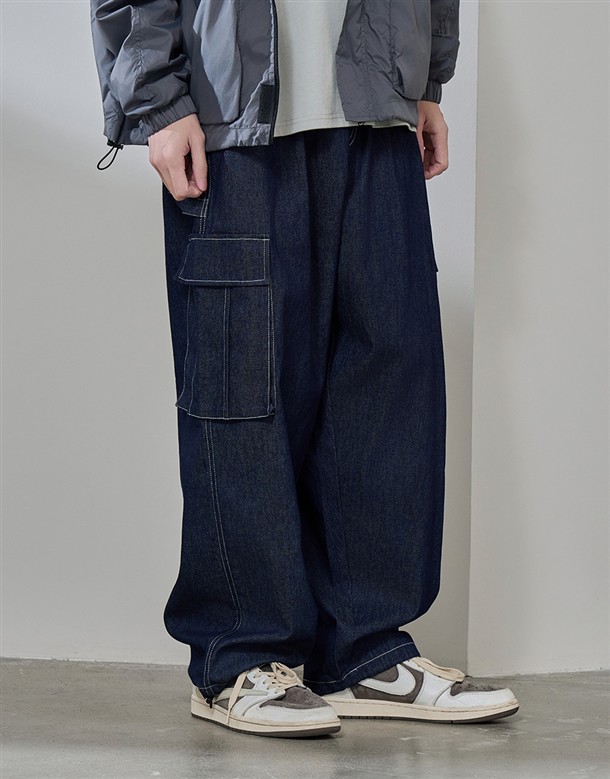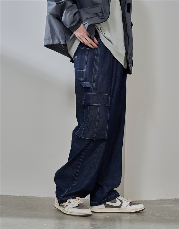 牛仔寬版工裝口袋褲