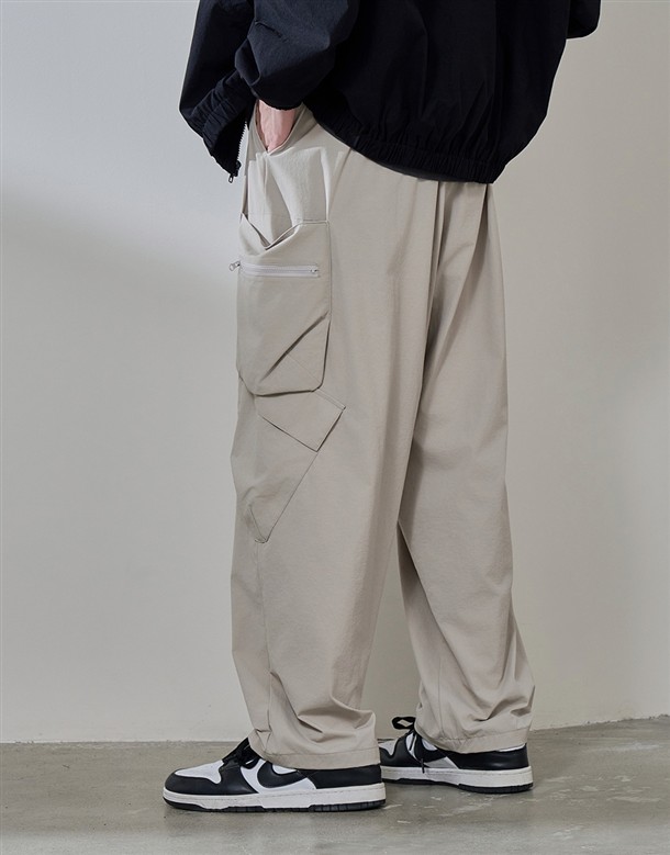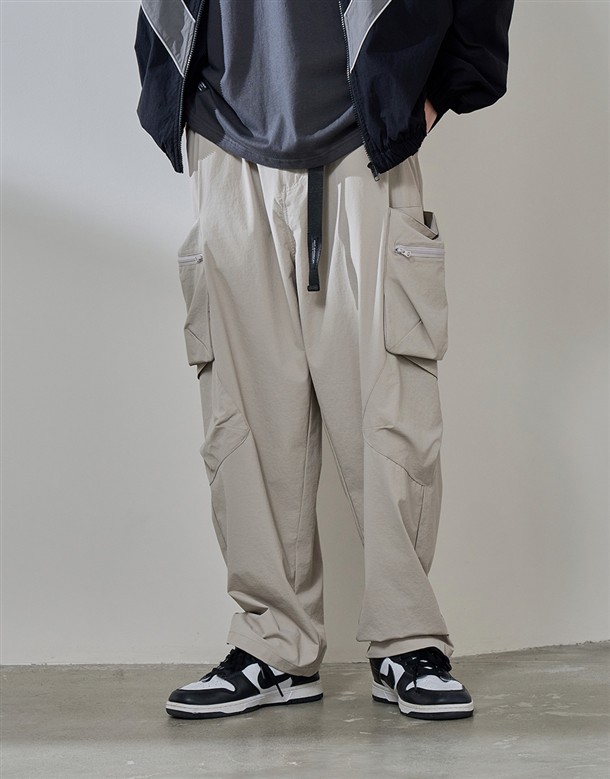 速乾寬版口袋工裝褲