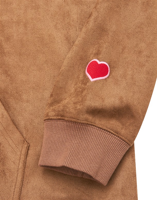 紅心電繡麂皮落肩帽T