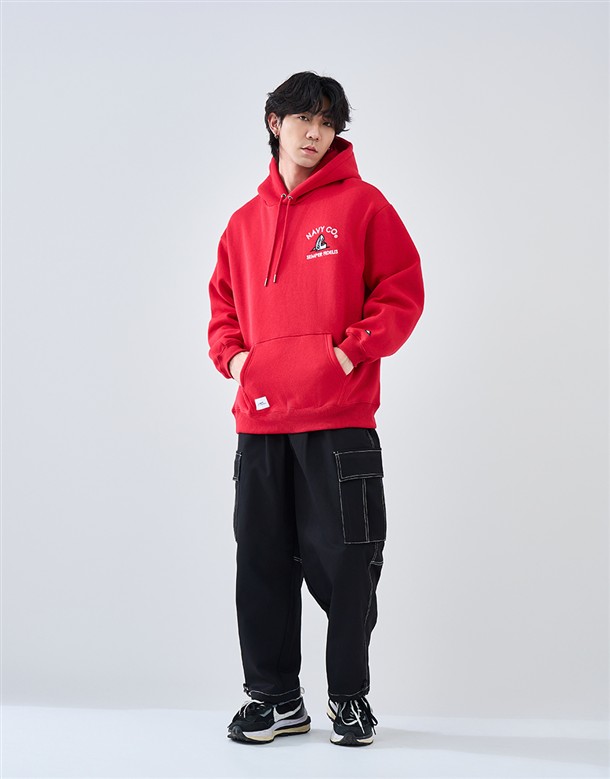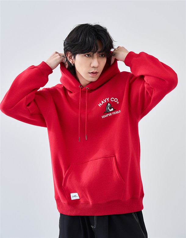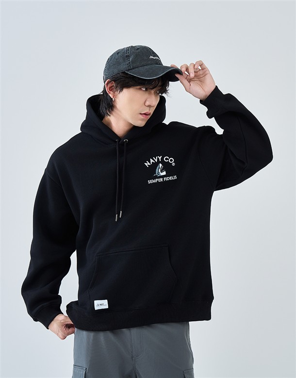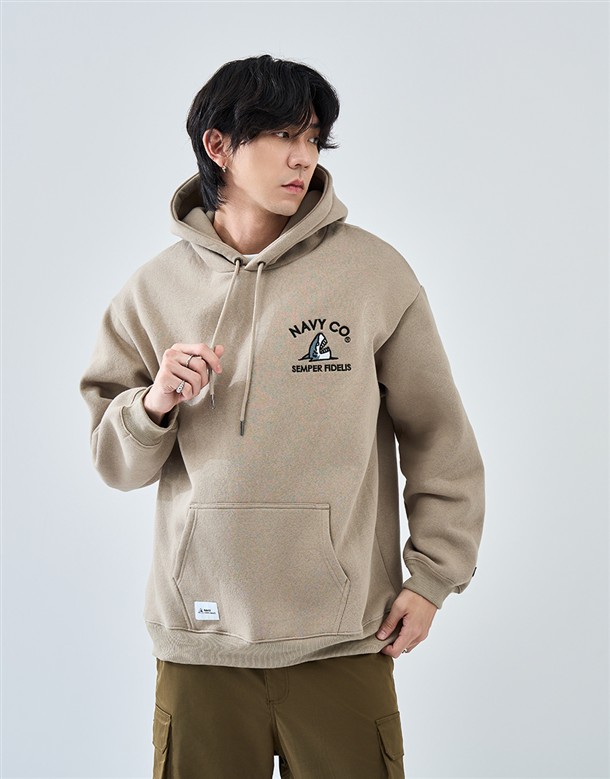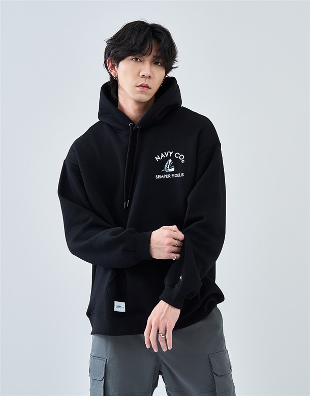 電繡鯊魚刷毛連帽T‧情侶款(男)