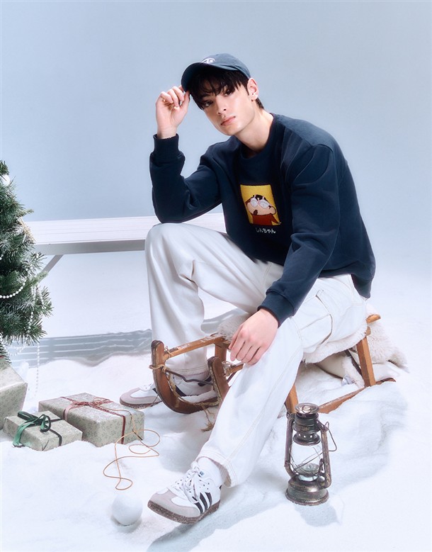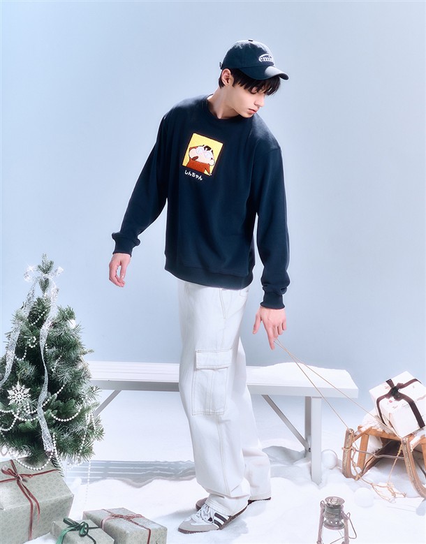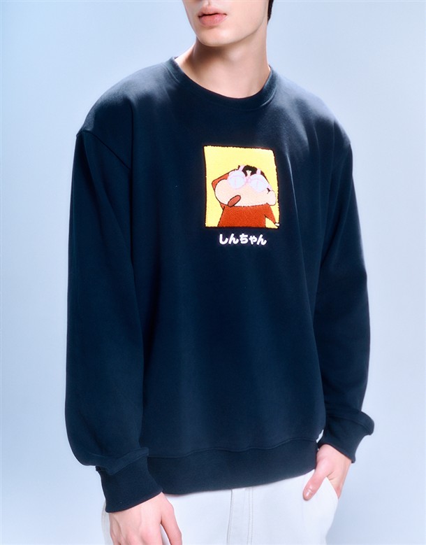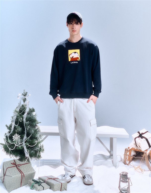 蠟筆小新絨毛貼布大學T‧親子款(男)