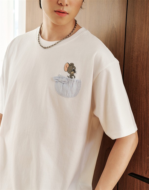 湯姆貓傑利鼠電繡大圖短T