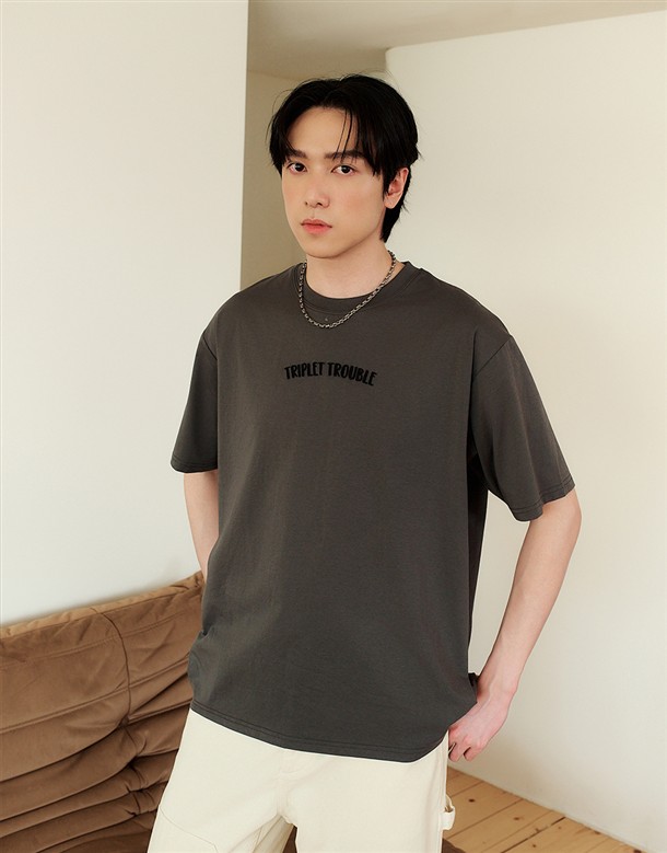TYKE植絨涼感落肩短T
