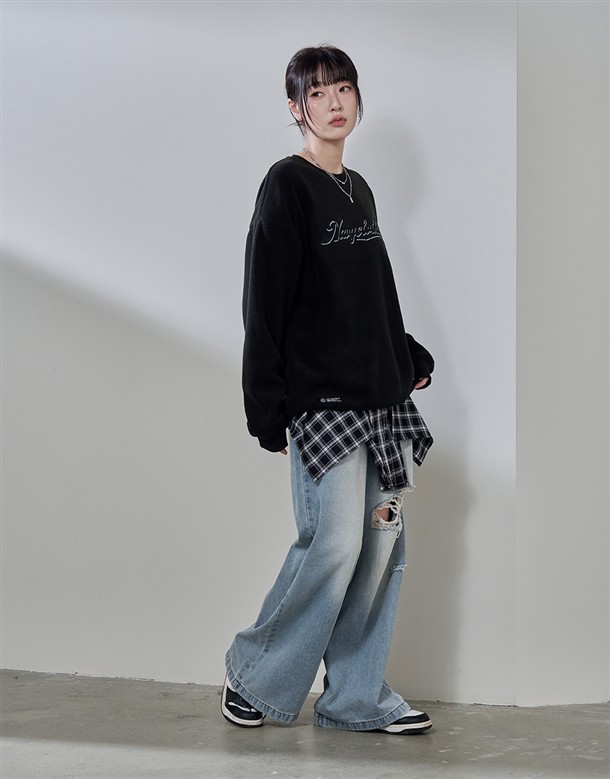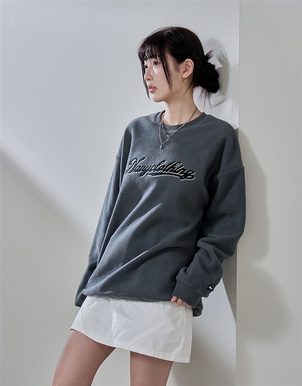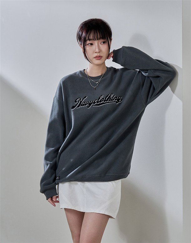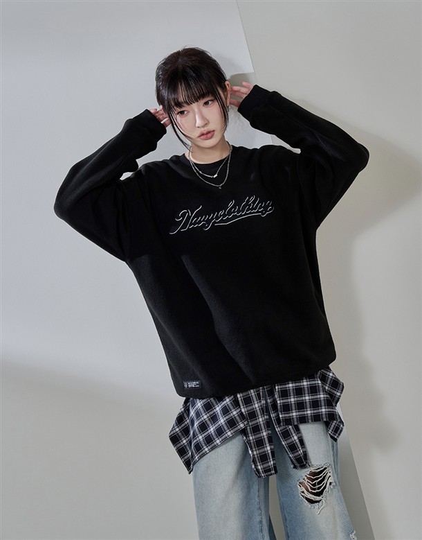 麂皮絨刷毛繡字大學T‧情侶款(女)