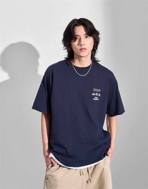 MIT NAVY-Crew書寫字短T‧情侶款(男)